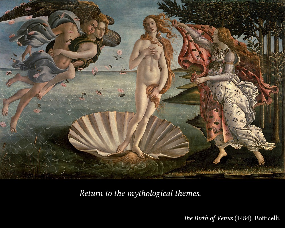 Return to the mythological themes. Rebirth of the Classic Antiquity.