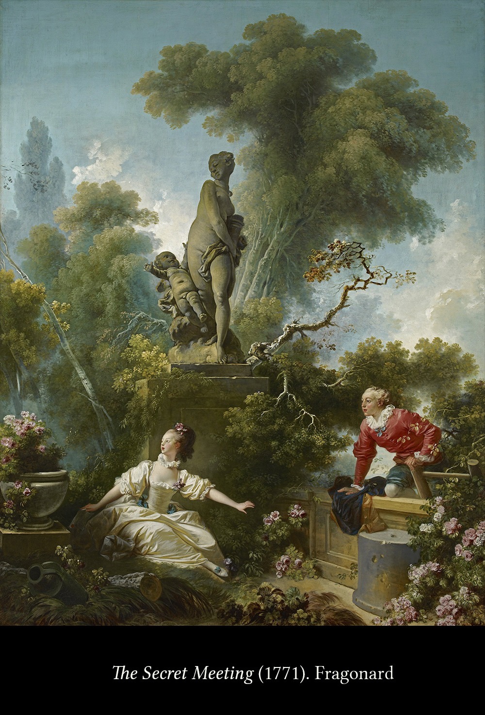 Rococo was popular in France for much of the 18th century, and it gracefully mirrored, with sophistication and delicacy, the carefree, frivolous, and "decorative" lives of the courtiers, as the people began to desire revolution.