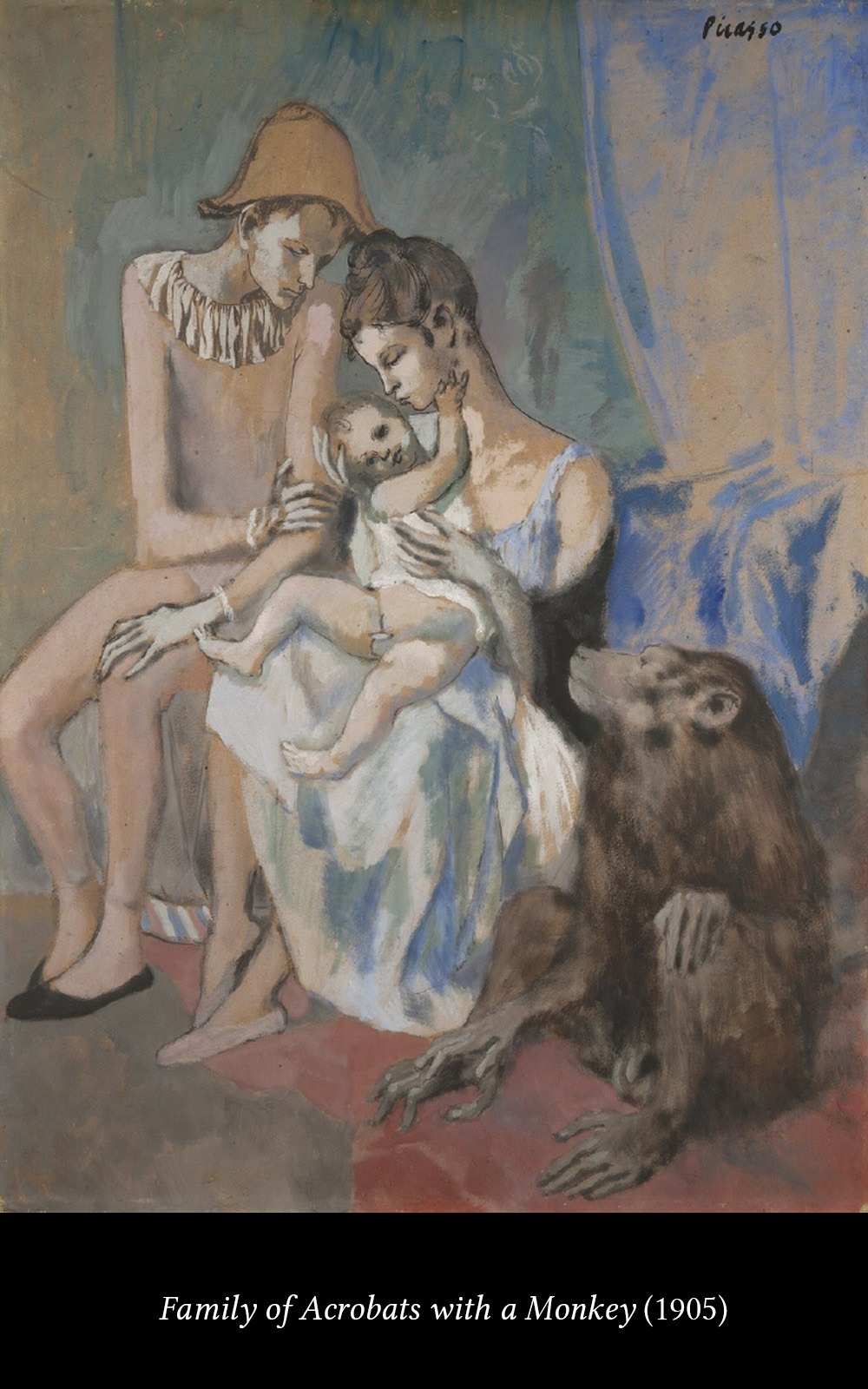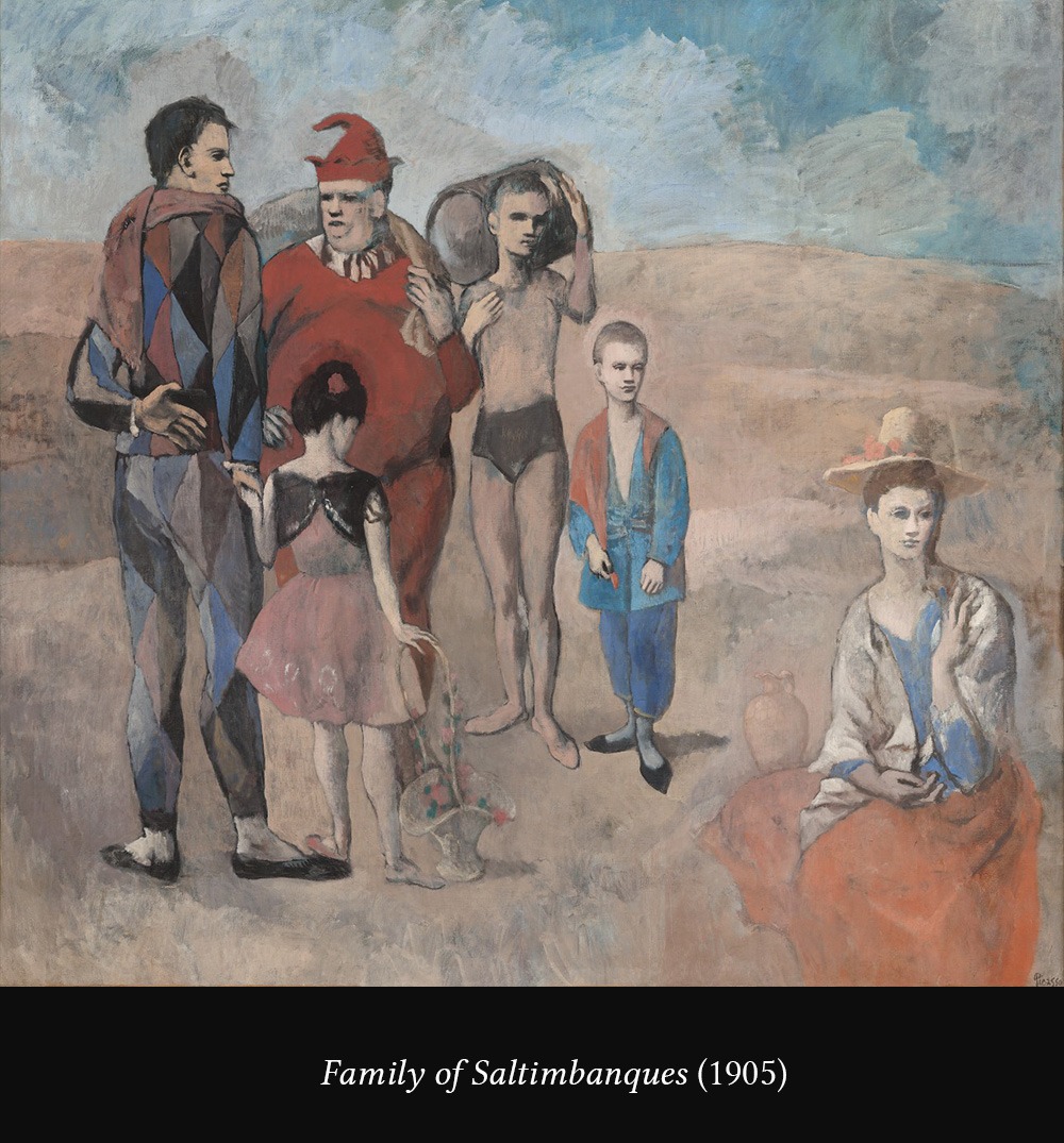 In addition to the colors, Picasso changed the marginal characters of his blue period for other marginal characters: the artists of the Medrano circus in Montmartre.