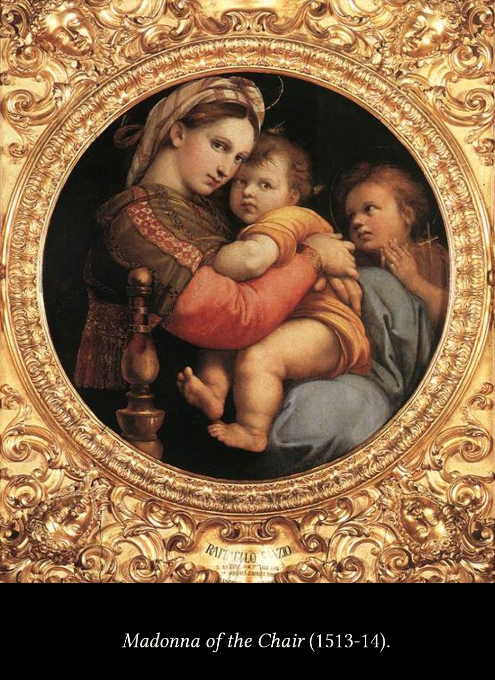 Raphael used to place the faces of her loved ones on the Madonnas he had to paint That is why as from his falling in love with La Fornarina —who lasted till the end of his life— she was the model of many of his works of the mature stage —the most exquisite— where his most famous Madonnas can be found, as the Sistine or the Madonna della Sedia.