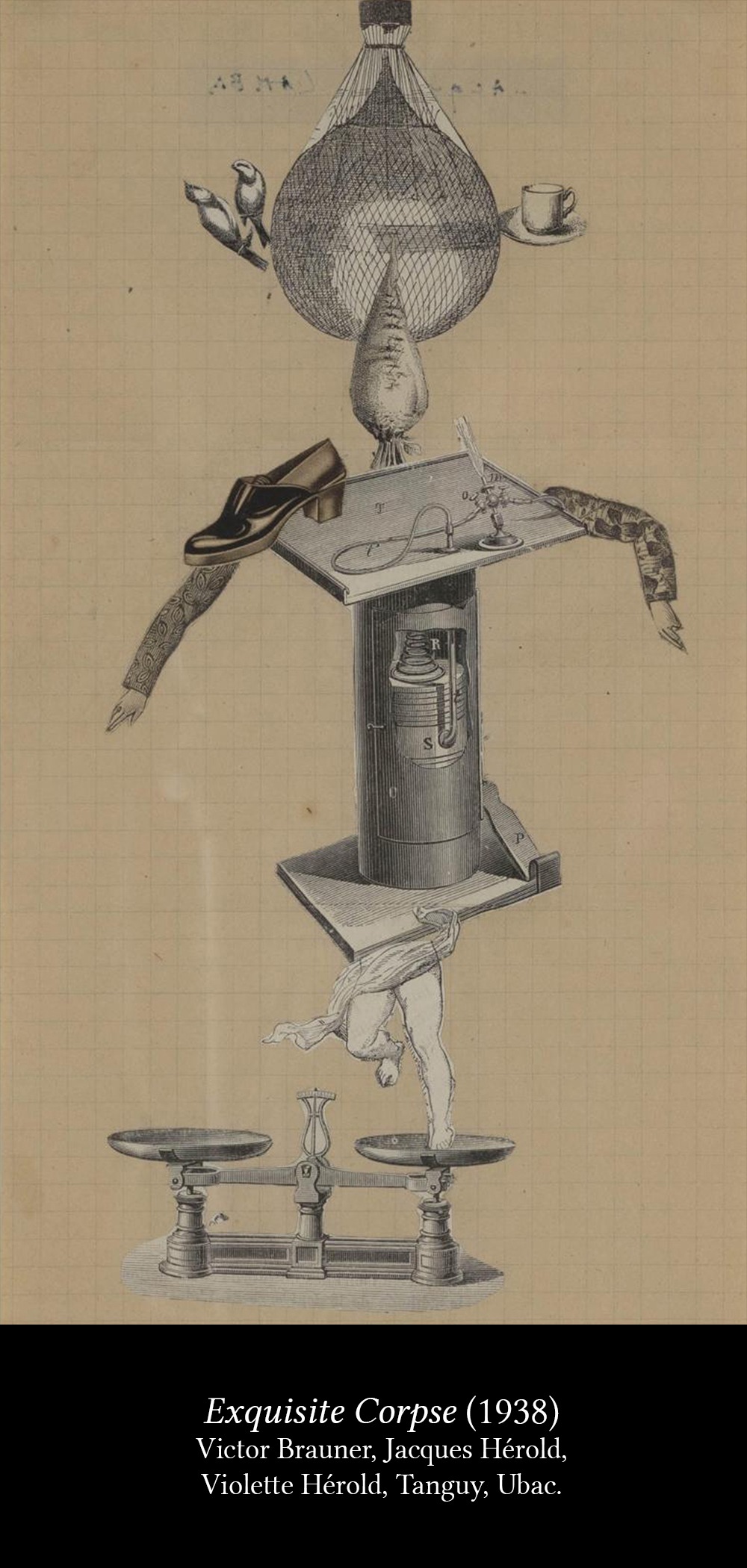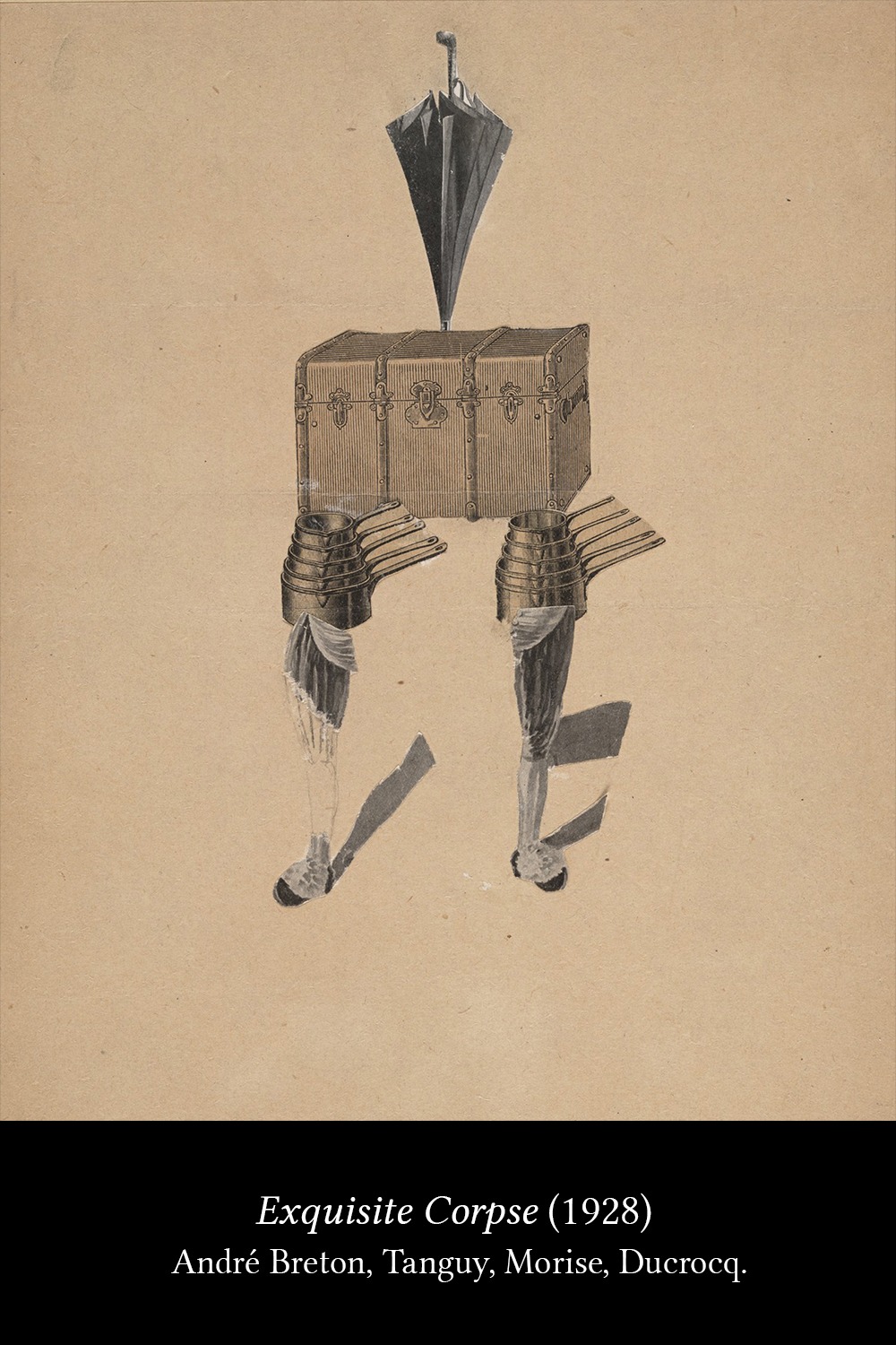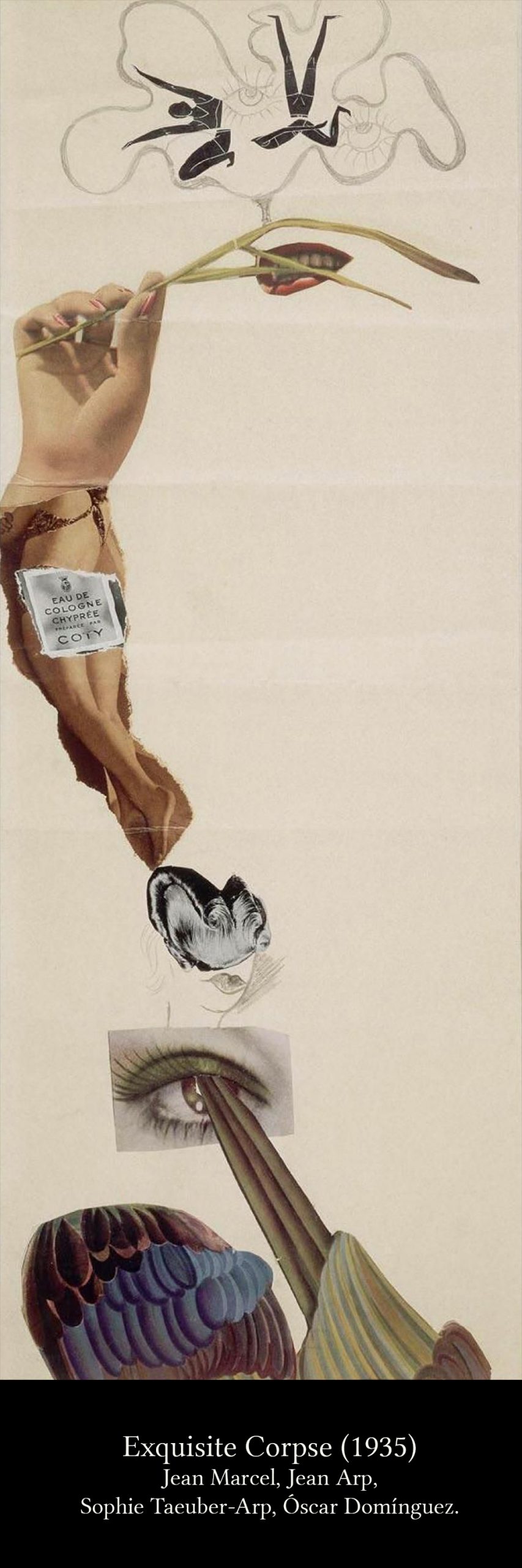 Exquisite Corpse is a creation technique that Surrealists invented in which several artists participate, as in a game.