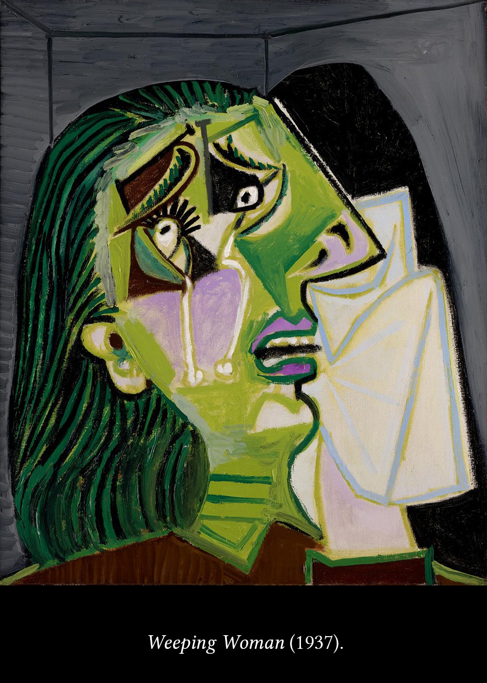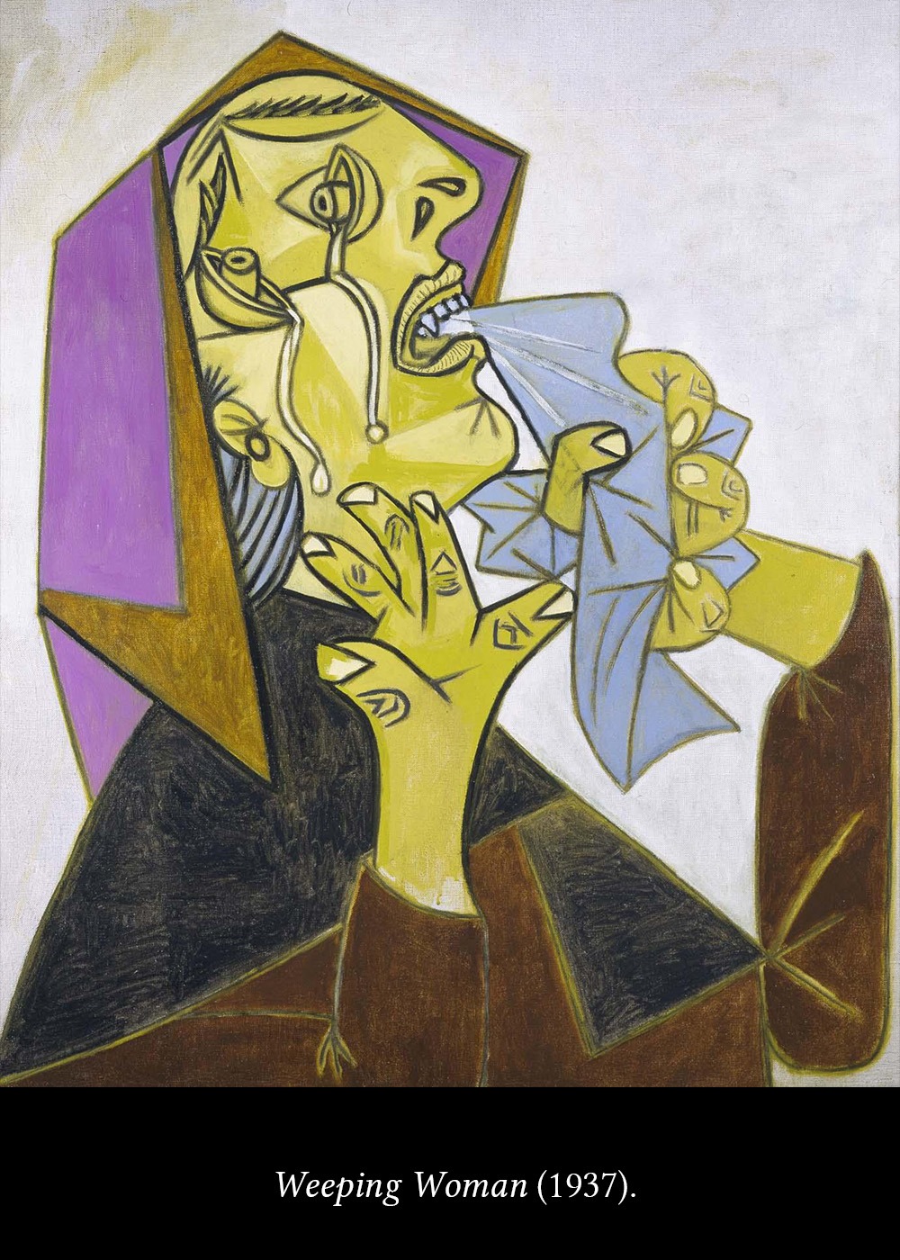 The series is called Weeping woman. The woman is Dora Maar, the great photographer of the Surrealism, who at that time had a relationship with Picasso. She documented with her camera all the Guernica process.