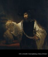 1653. Aristotle Contemplating a Bust of Homer. Late period (from 1650). He left the details aside and used a looser brushstroke, making it more "visible" (probably influenced by the work of Titian).
