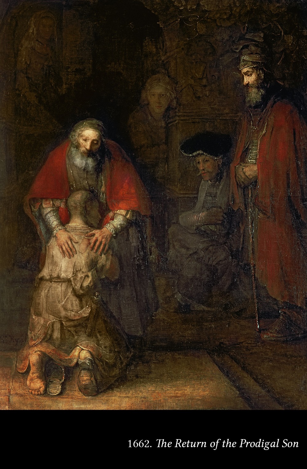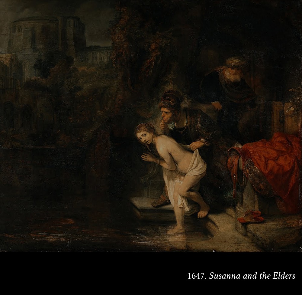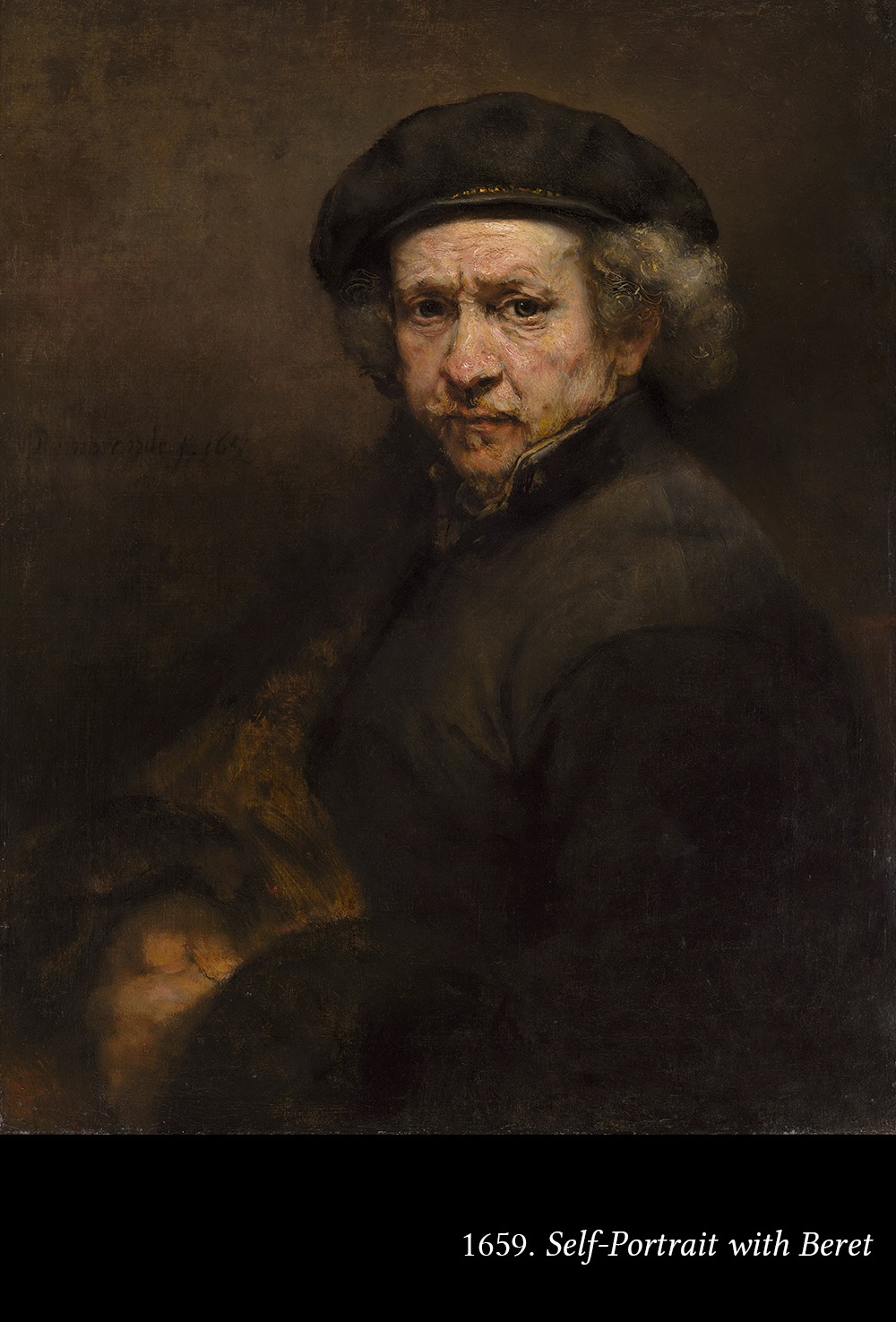 1653. Aristotle Contemplating a Bust of Homer. Late period (from 1650). He left the details aside and used a looser brushstroke, making it more "visible" (probably influenced by the work of Titian).