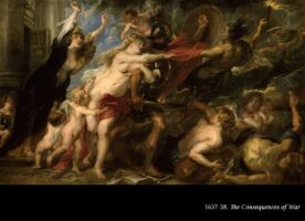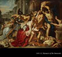 In 1598, when he was 21 years old, he became a master of the guild (an association, in this case of painters) of St. Luke of Antwerp. He then travelled to Italy for 2 years to study the painters of the Renaissance. In Venice, he became acquainted with the work of Titian, whom he would consider his true master for the rest of his life. We see Titian's influence in color, movement, and the loose brushstroke.