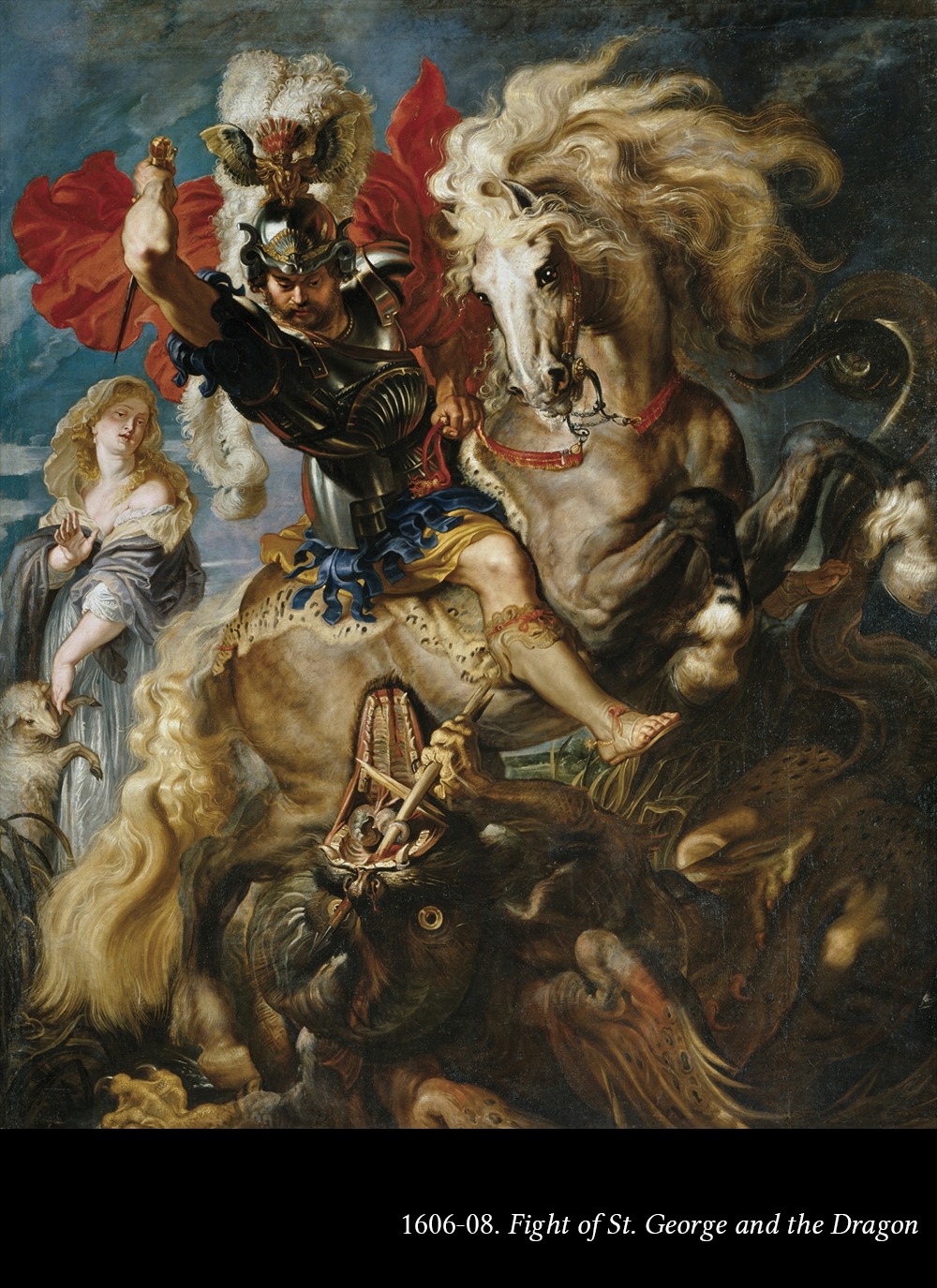 1606-08. Fight of St. George and the Dragon. In 1608, he returned to Antwerp after having worked for nine years for the Duke of Mantua (Mantua is located between Venice and Milan).