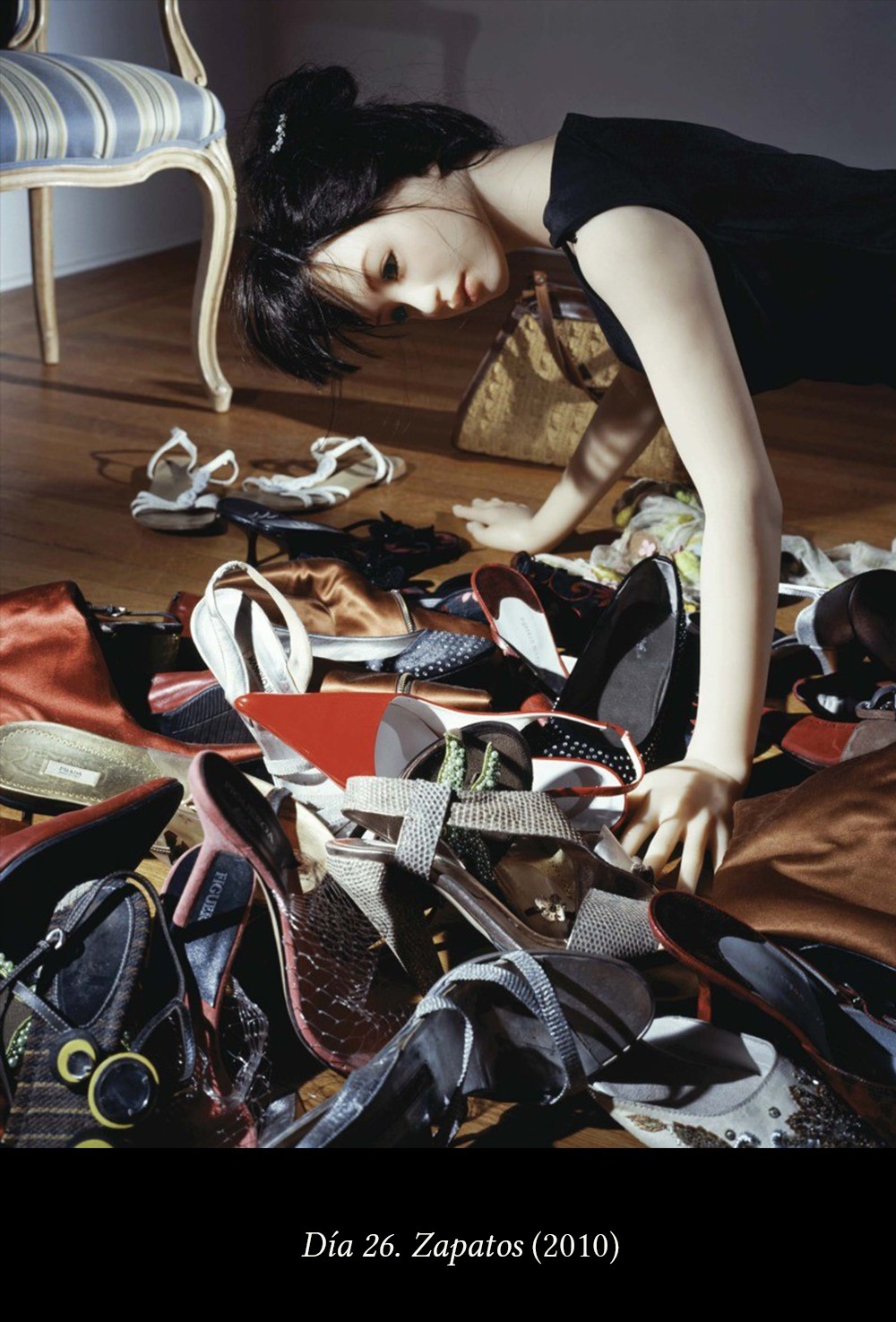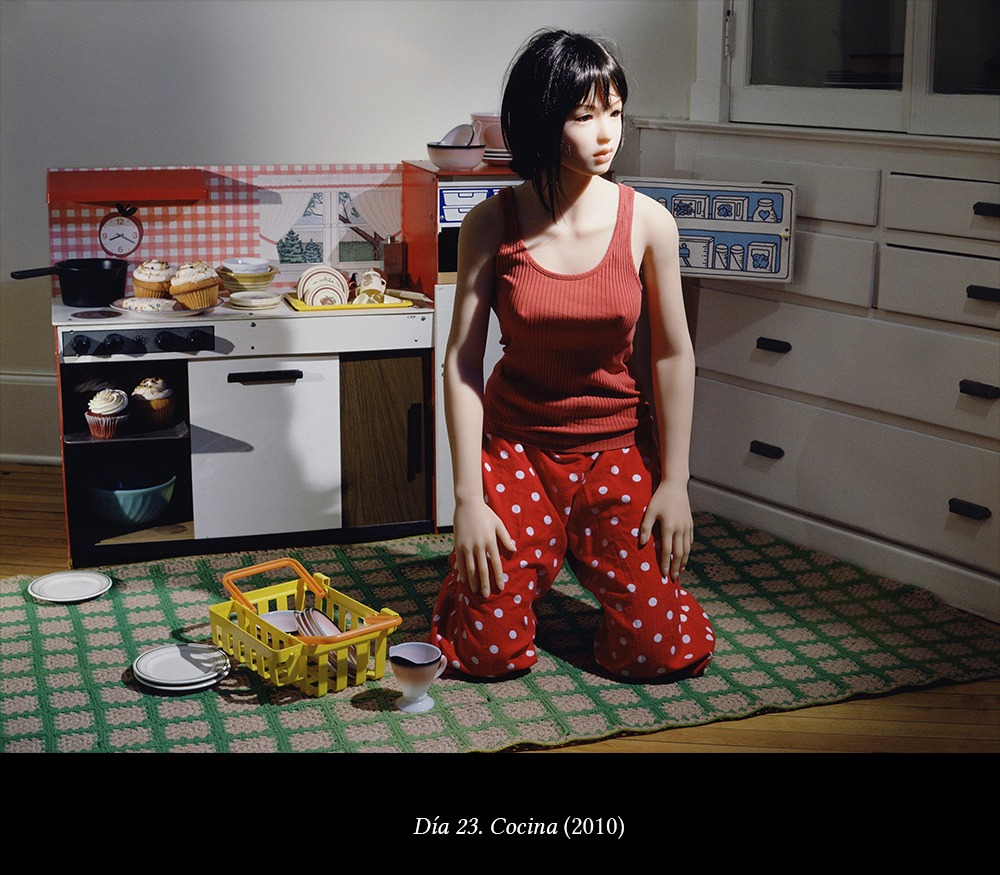 Y en esta serie (de unas décadas posteriores al auge de dicho movimiento), la fotógrafa elige como protagonista a una sustitución del sexo del mundo moderno: una muñeca sexual japonesa, de tamaño humano y rasgos físicos ideales.