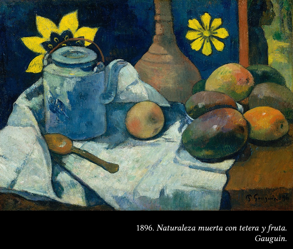 1896. Naturaleza muerta con tetera y fruta. Gauguin. Postimpresionismo.