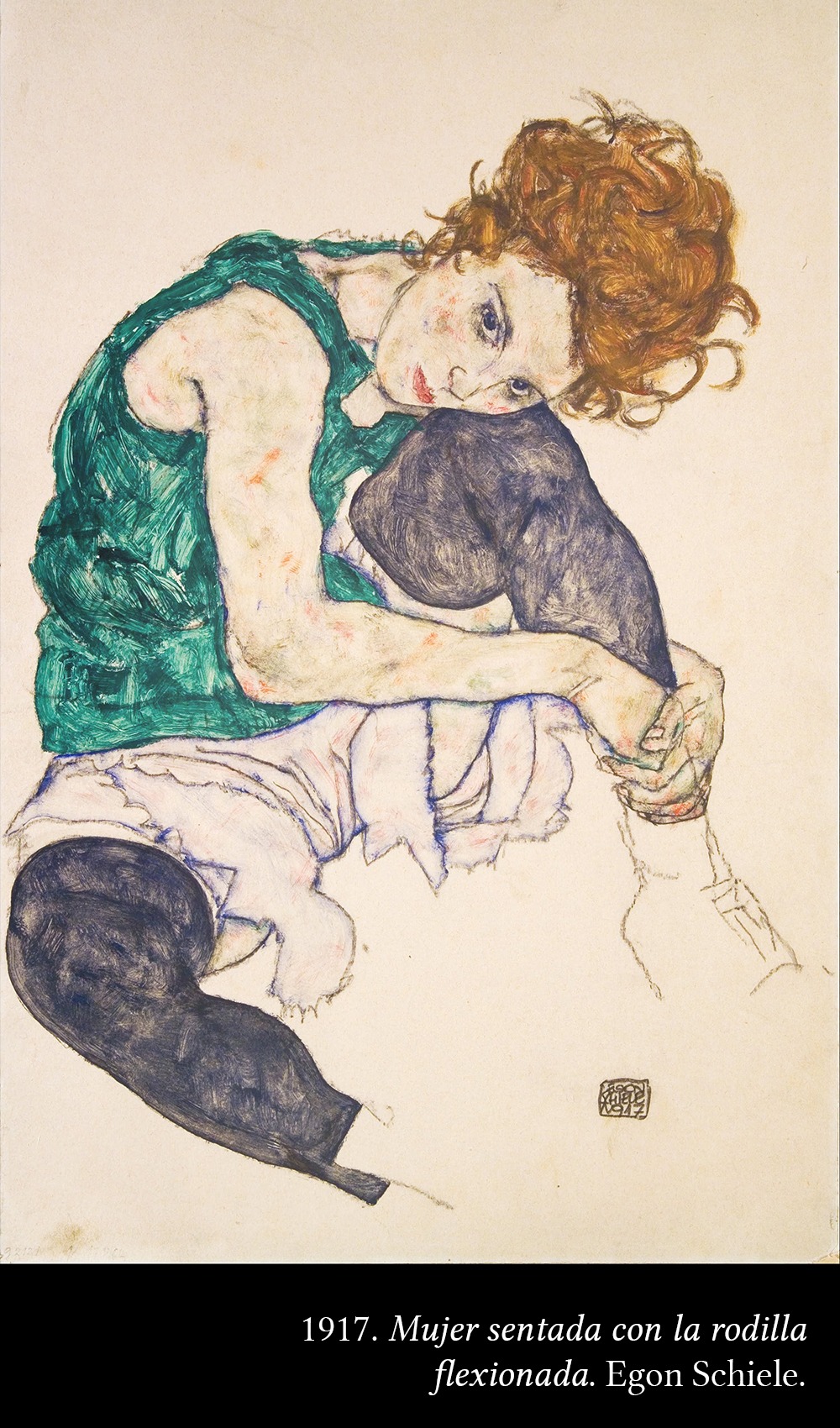 1917. Mujer sentada con la rodilla flexionada. Egon Schiele.