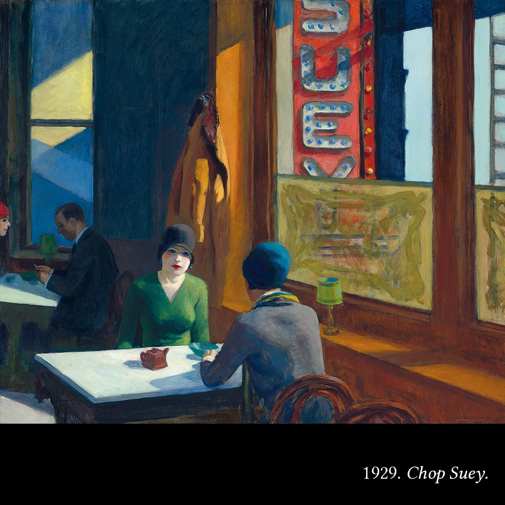 Probablemente, ese acercamiento al arte de los impresionistas (y a pesar de que Hopper pronto dejará de pintar como ellos), es lo que lo volverá un experto en el manejo de la luz para generar atmósferas. Atmósferas que (a partir de una luz más bien fría, melancólica, poco natural), se convertirán en un ingrediente fundamental de la obra del artista, por la que es considerado “el pintor de la soledad del hombre moderno”.