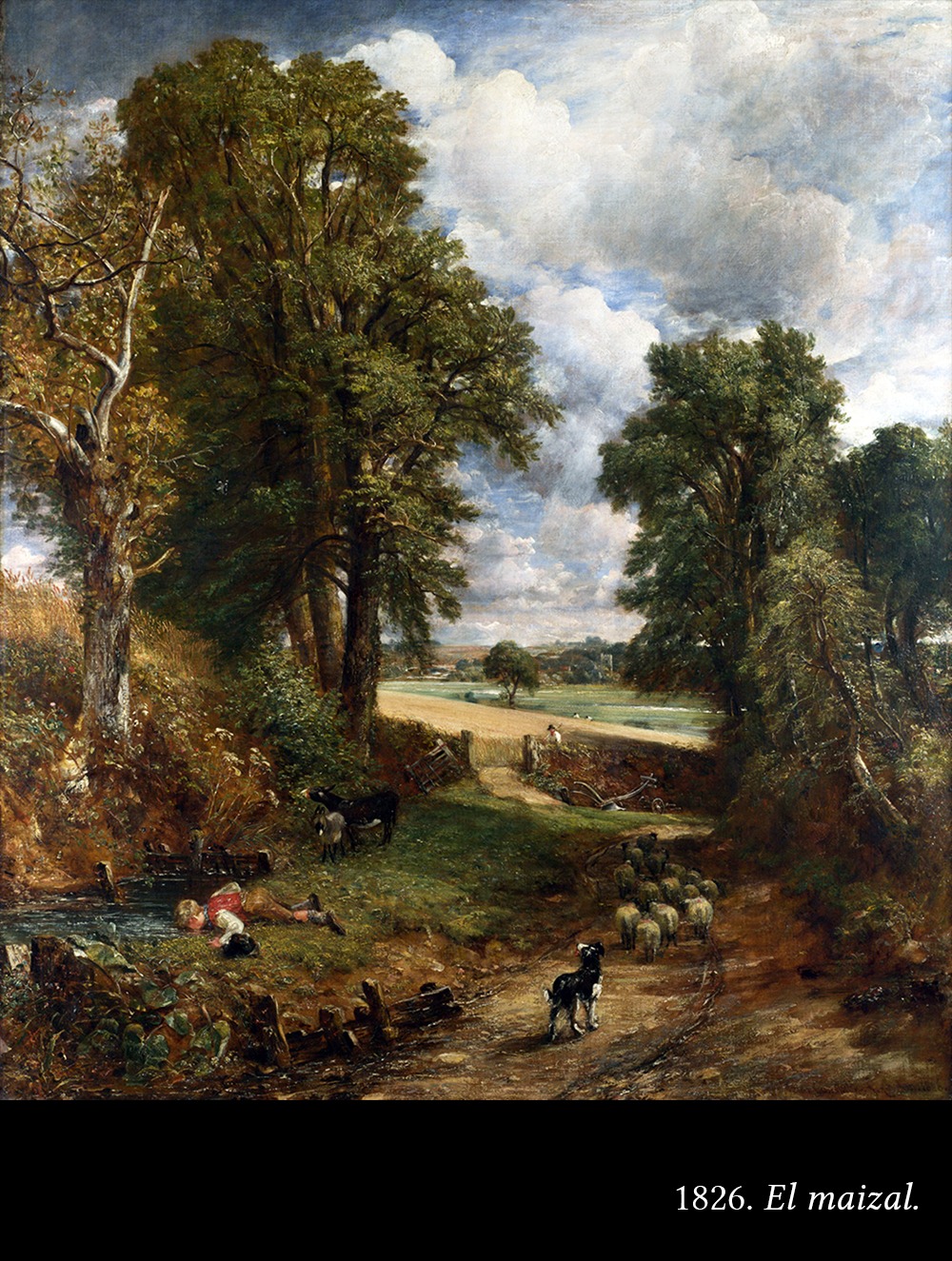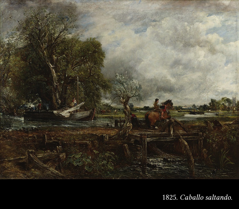 John Constable es uno de los grandes paisajistas de la historia. Por un lado, se libera de la representación convencional, estereotipada, la que se enseña en la academia, y sale a buscar su propia experiencia (lo que llamamos “experiencia directa”) al aire libre, estudiando con sus propios ojos los efectos de los cambios de luz y las condiciones atmosféricas. Un claro antecedente del impresionismo.