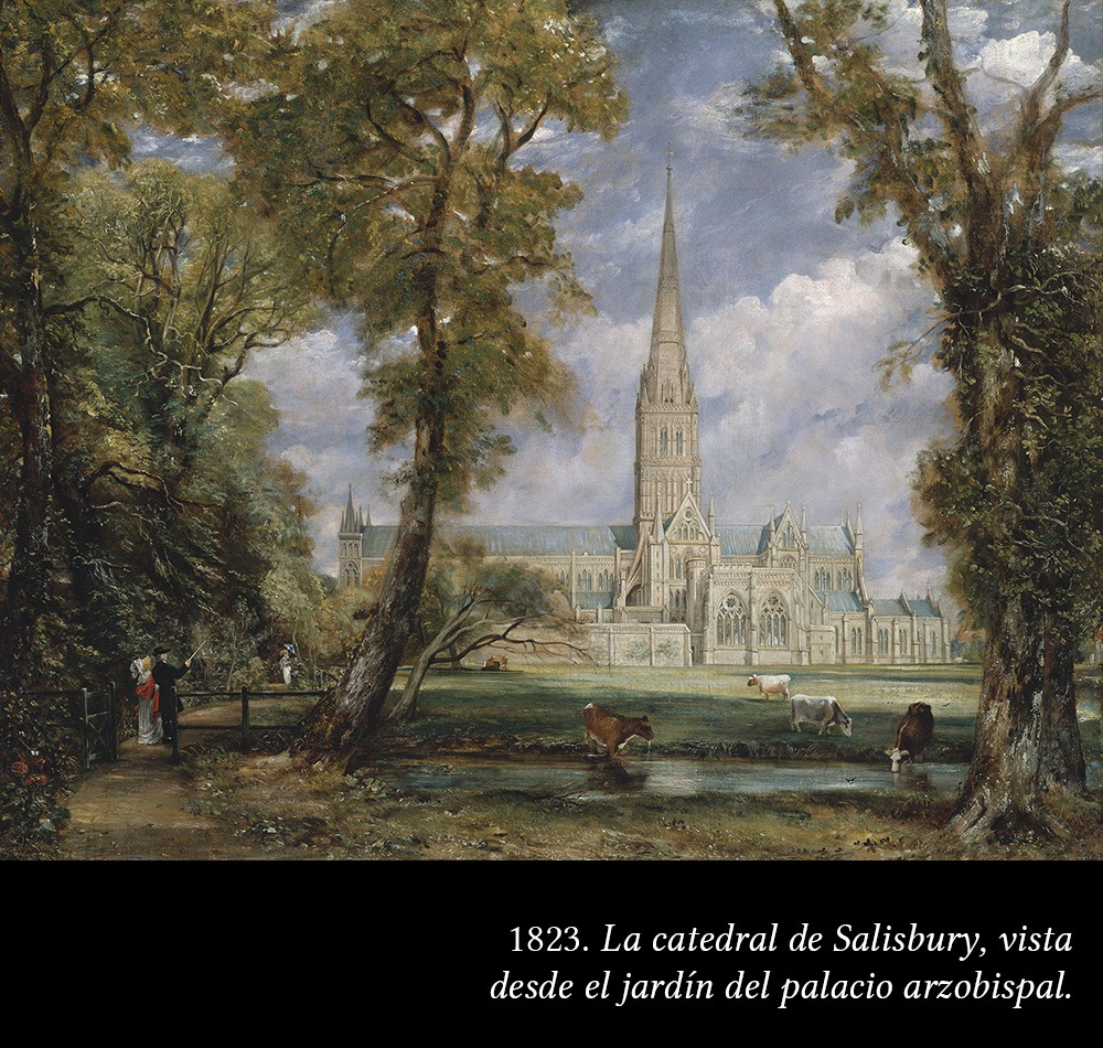1830/31. La catedral de Salisbury vista a través de los campos.