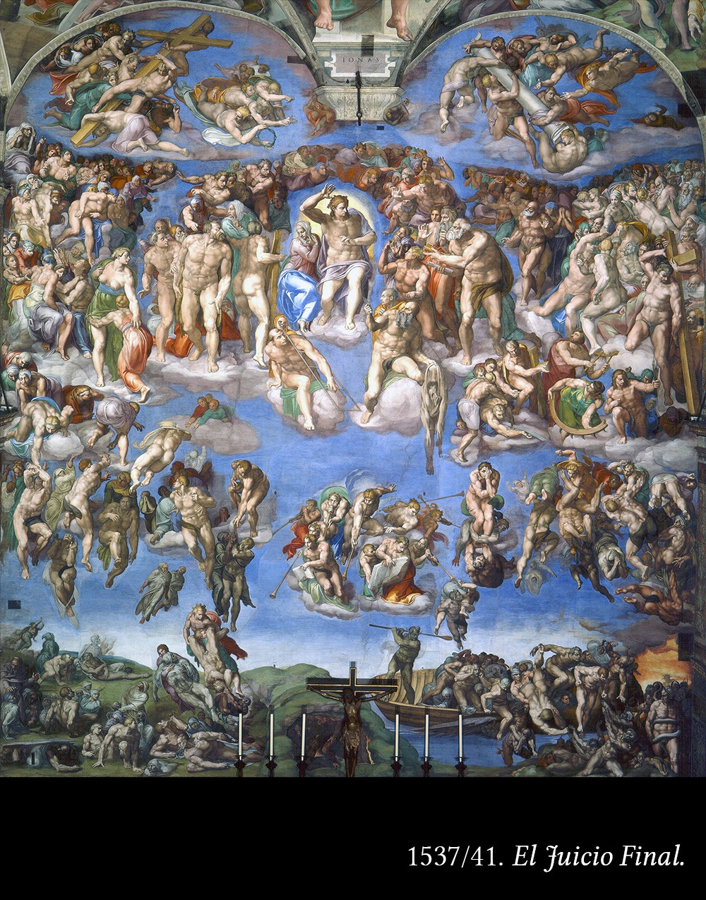 Miguel Ángel es considerado uno de los más grandes pintores de todos los tiempos. Sin embargo él, provocativamente, se jacta diciendo que ni siquiera se considera pintor, y juzga a la pintura como un arte muy por debajo de la escultura. Incluso su obra en la Capilla Sixtina, que le demanda años y años de trabajo, no es una obra que hace por su voluntad sino por imposición del Papa Julio II.