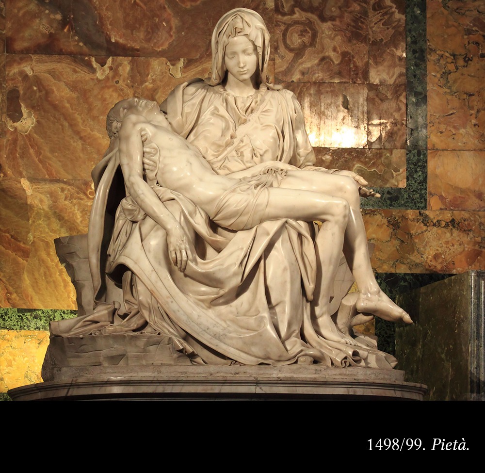 1490/92. Madonna de la escalera. Este bajorrelieve lo termina antes de cumplir los 17 años.