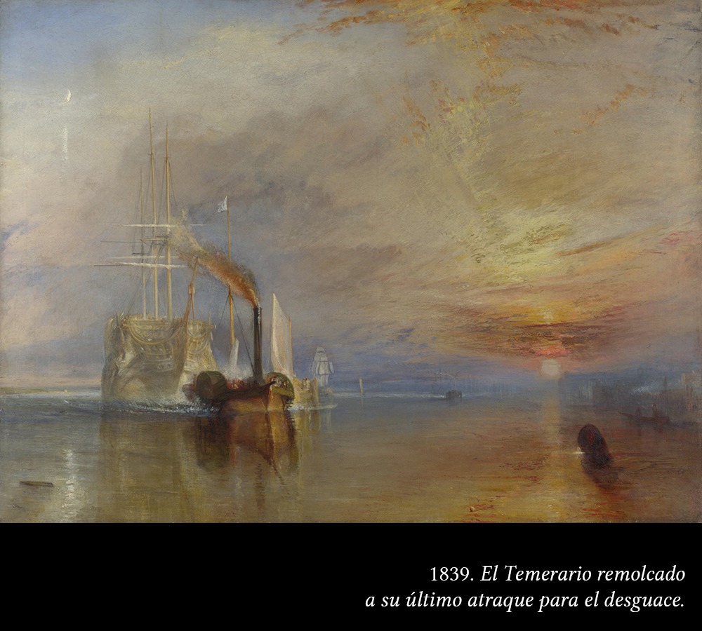 1839. El Temerario remolcado a su último atraque para el desguace.