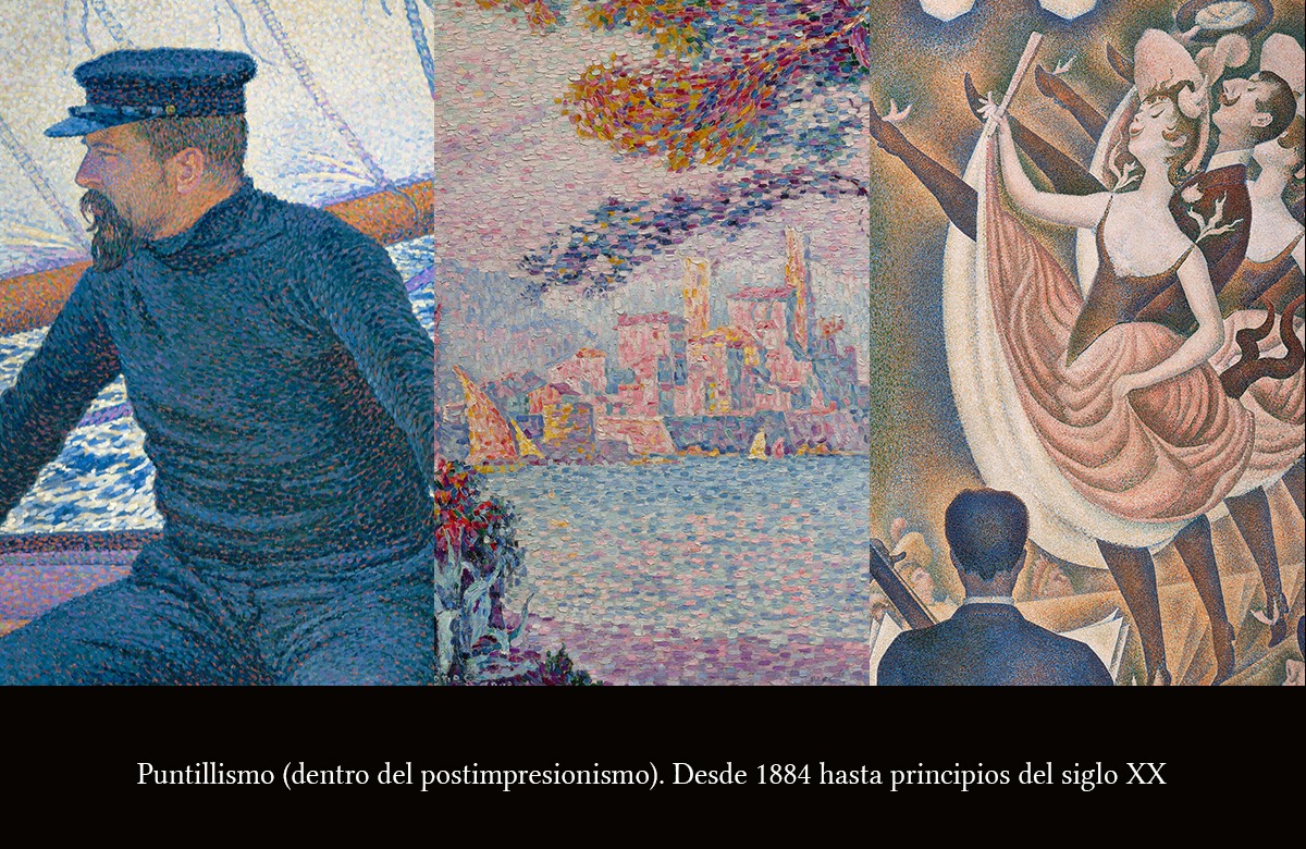 Puntillismo (dentro del postimpresionismo). Desde 1884 hasta principios del siglo XX. Más información.