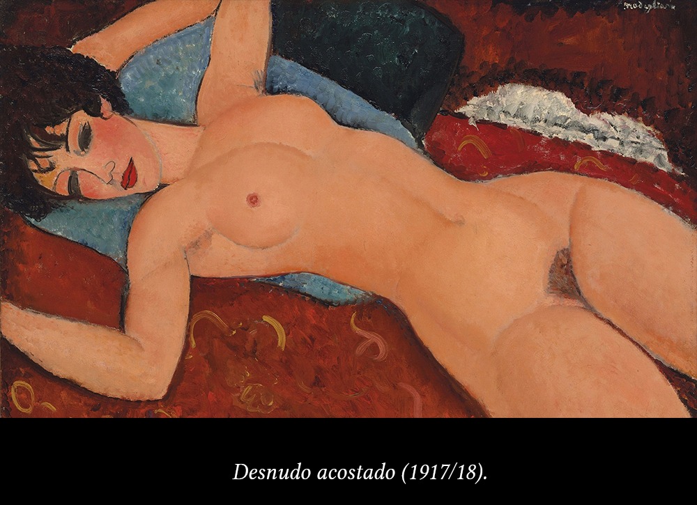 Amedeo Modigliani es un ejemplo contundente de la modernidad llevada a un género tradicional como el desnudo. En primer lugar, su pintura va hacia el futuro dirigiéndose al pasado (la fascinación por el primitivismo): y encontramos una fuerte influencia del arte de las culturas ancestrales y exóticas, fundamentalmente en la síntesis, la economía de recursos, y en los rasgos angulosos. Y en segundo lugar y como podemos imaginar: en la distorsión para lograr expresividad. Esa distorsión que cuanto más aleja a la figura humana de su modelo "real", más humanidad le otorga.
