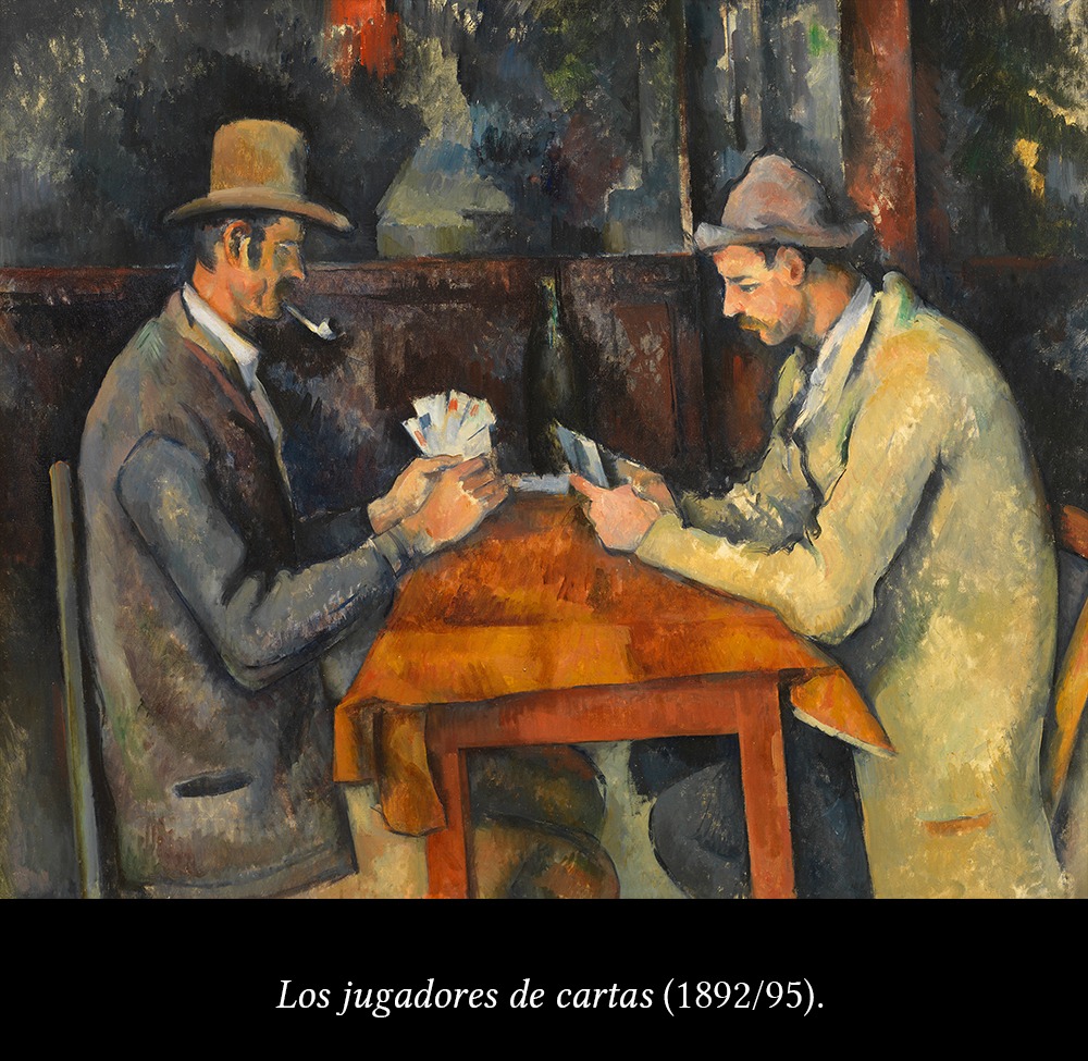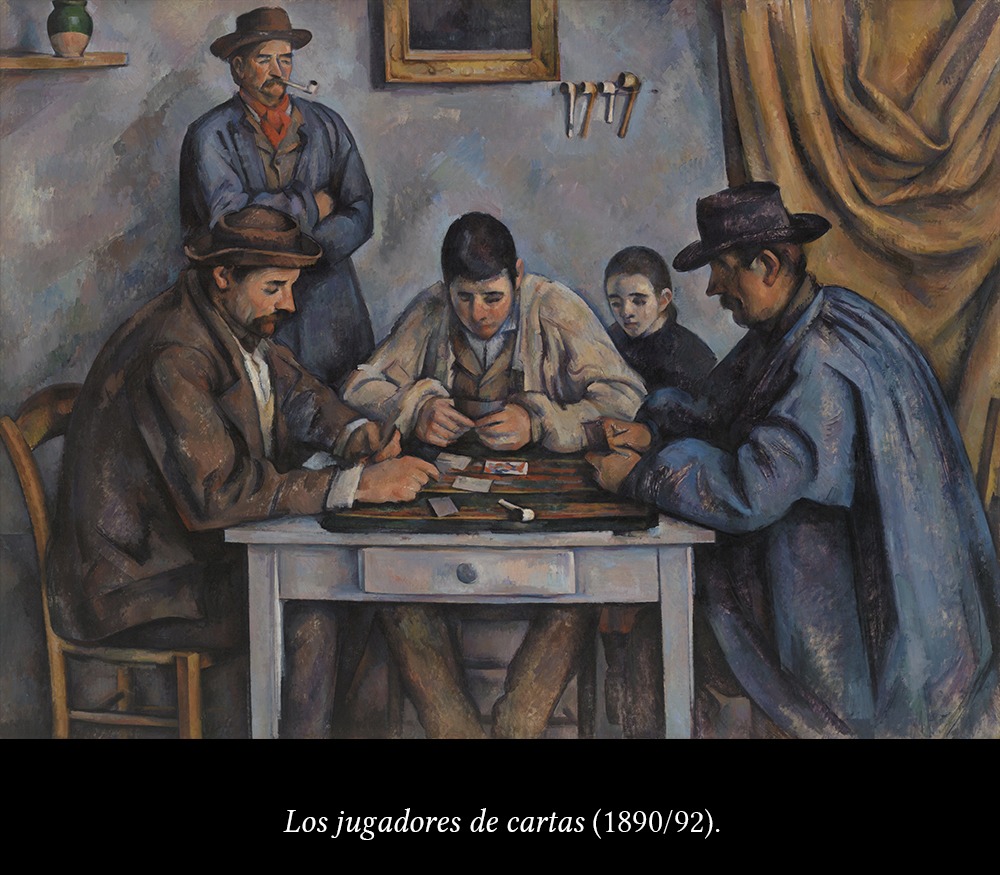 Cézanne no busca realismo, pero tampoco se aleja del realismo para exagerar la expresividad: lo que busca es “componer” la escena a partir de volúmenes. Una frase famosa del artista es “Todo en la naturaleza está modelado según la esfera, el cilindro y el cono”. Y es, a partir de esa concepción, que su búsqueda fundamental es lograr armonías entre los distintos volúmenes.