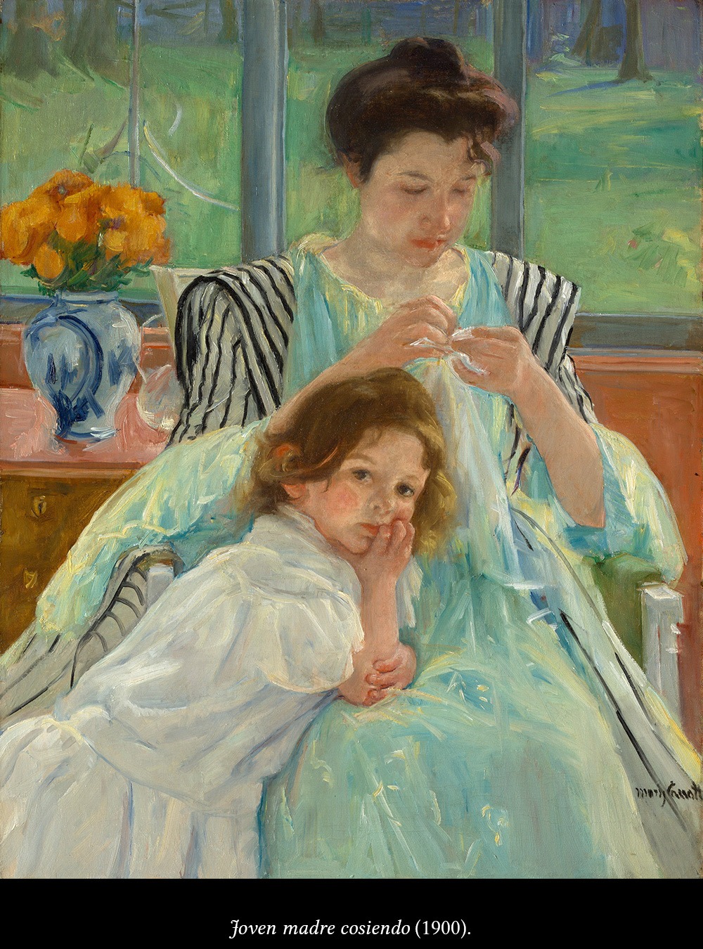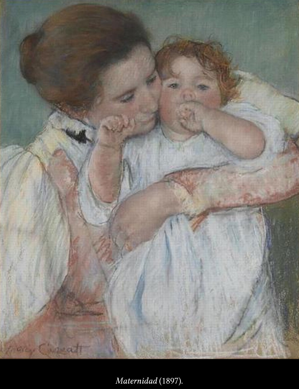 Por ello, una vez que logra ser parte del movimiento impresionista por invitacion de Degas, decide priorizar la carrera a casarse y tener hijos. Y como el arte consiste en crear universos nuevos, el universo que ella se crea en gran parte de su obra es el de la intimidad del hogar y el amor maternal.