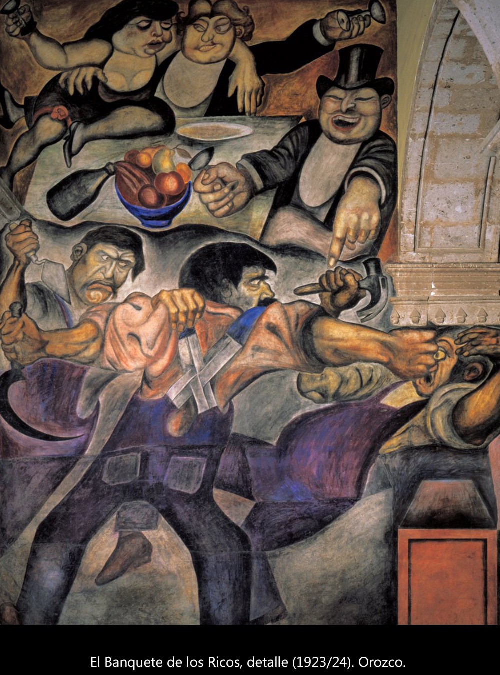 Es un movimiento que nace en 1921 y tiene una característica fundamental: el artista no sólo muestra su visión particular del mundo, sino que se compromete con su arte para cambiar la realidad. Las paredes se encargan entonces de concientizar al pueblo: denuncian las atrocidades vividas desde la conquista española en adelante, así como las injusticias sociales, difunden los ideales de la revolución mexicana, y reivindican la cultura popular y sus raíces en busca de una redefinición de la identidad nacional.