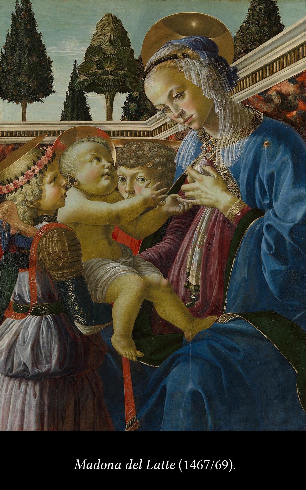 En realidad, sus cuadros no son exclusivamente suyos sino que suelen tener colaboradores (los discípulos de Verrocchio), o se atribuyen al taller (se considera que han sido pintados por uno o varios discípulos, sin la certeza de que haya intervenido el maestro).