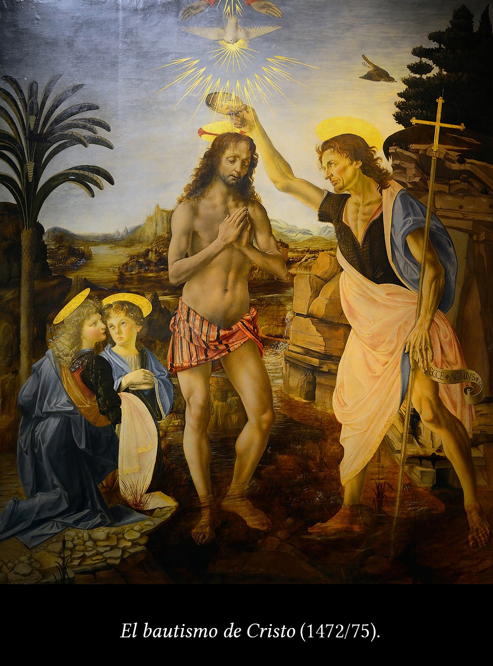 El cuadro que se le atribuye al maestro sin ninguna duda de autoría es El bautismo de Cristo. Pero incluso en esa obra, los especialistas han descubierto que ha colaborado Leonardo: en gran parte del paisaje, en el cuerpo de Cristo y en el ángel de la izquierda.