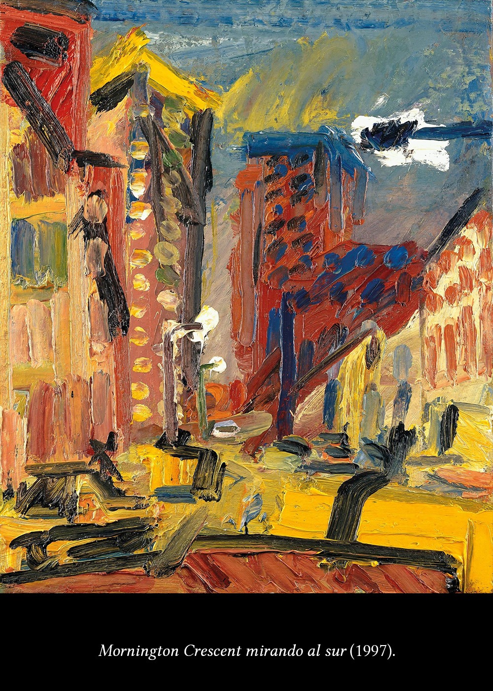 Cuanto más detalles externos elimina el artista, más aflora el mundo interior. Por eso, no nos equivocaremos mucho si decimos que junto a los de Chaïm Soutine (allá por los años 20), los paisajes de Auerbach están entre los más perfectos ejemplos de lo que llamamos “paisaje expresionista” (recordemos que por “expresionista” nos referimos a algo que vemos distorsionado respecto de la realidad, y en esa distorsión se expresan emociones o sentimientos del artista o de la cosa representada).