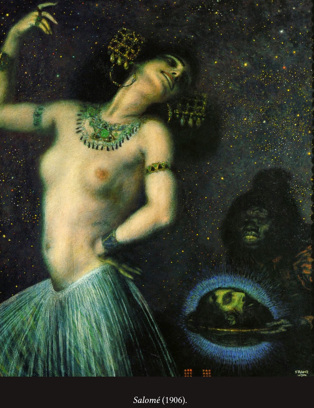 La obra de Franz von Stuck, artista del simbolismo y del modernismo alemán, está dominada por la mujer sensual y provocativa (observemos la actitud de la mujer en las escenas bíblicas, como la Eva que no tiene nada de inocente). Un modelo de mujer definitivamente poderosa.