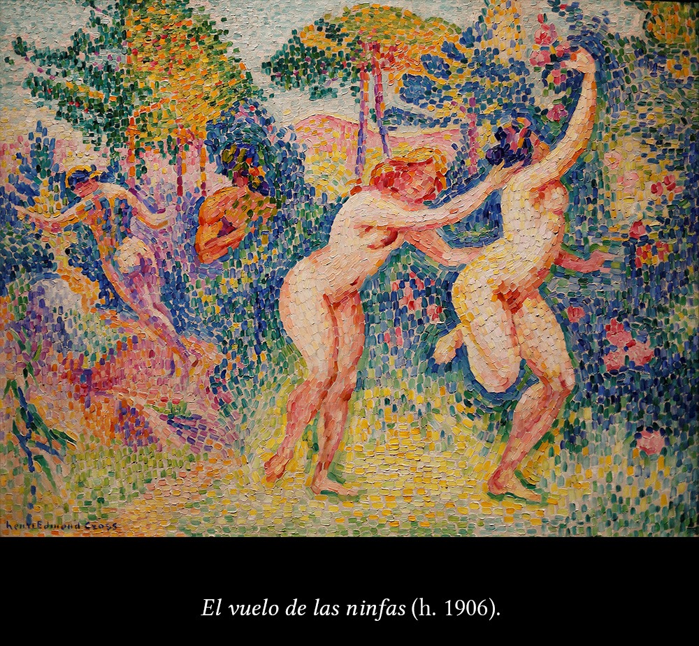 Cross pinta al principio como impresionista, pero cuando surge el puntillismo adhiere a éste. Apreciemos en la evolución de sus obras a través del tiempo cómo cambia del "puntillismo tradicional" (como el de Seurat, digamos, el padre del puntillismo), a utilizar pinceladas más grandes y rectangulares (como si se tratara de un mosaico), y cómo empieza a utilizar el color para crear emoción (lo vuelve más vibrante, más vivo).