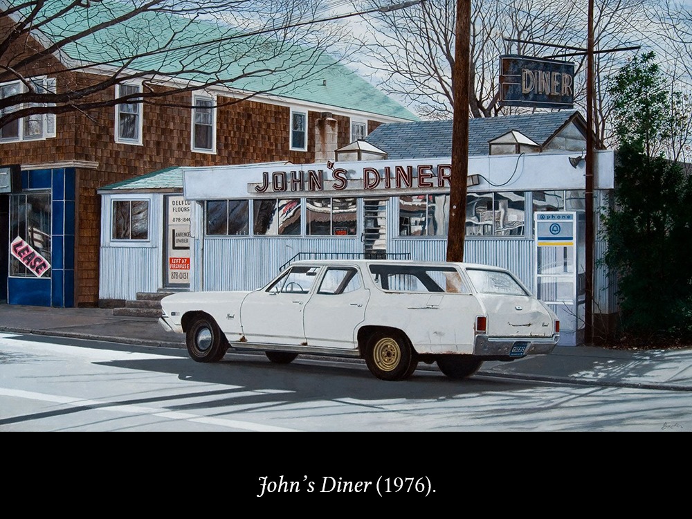 John Baeder es uno de los pintores fotorrealistas más reconocidos (el fotorrealismo es un movimiento de fines de los 60, que retrata la realidad con precisión fotográfica). Es el pintor que ha documentado la cultura de los comedores de carretera (los restaurantes económicos llamados “diner”) y de los camiones de comida. Y como todo gran artista, ha encontrado belleza donde otros veían fealdad o pasaban de largo.