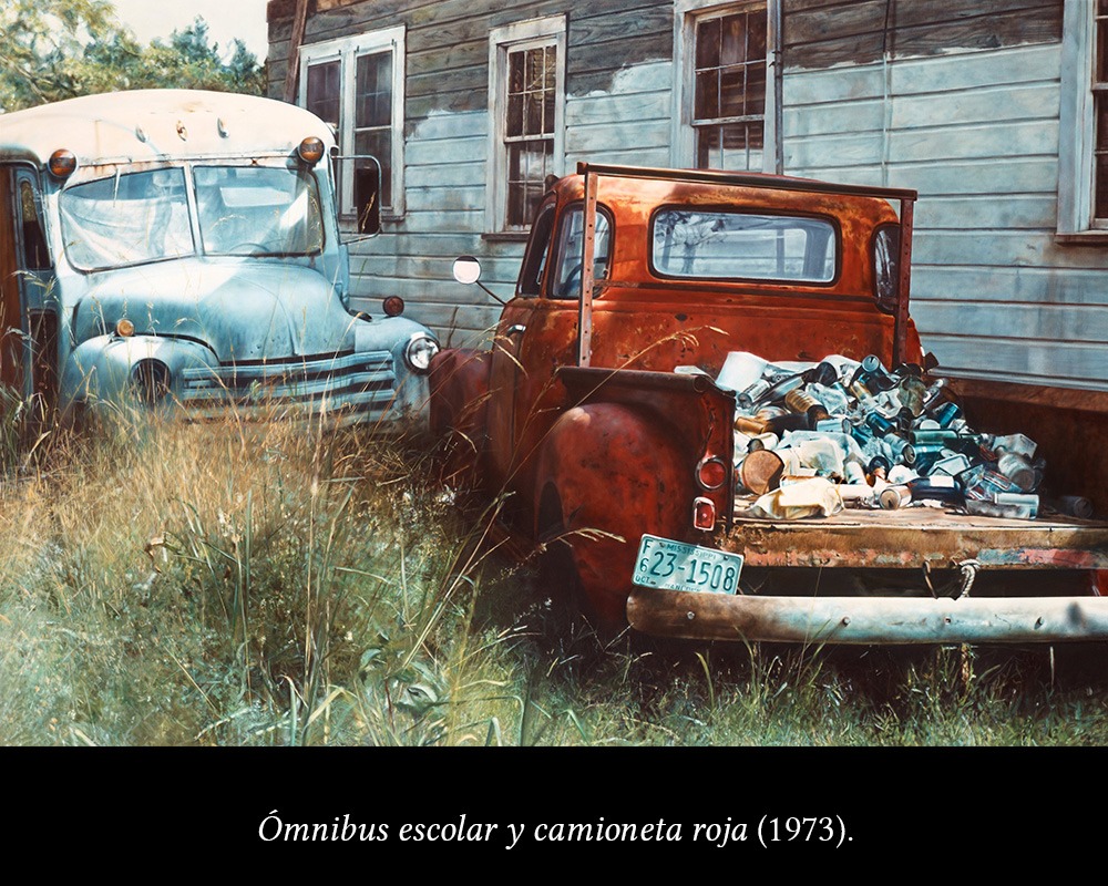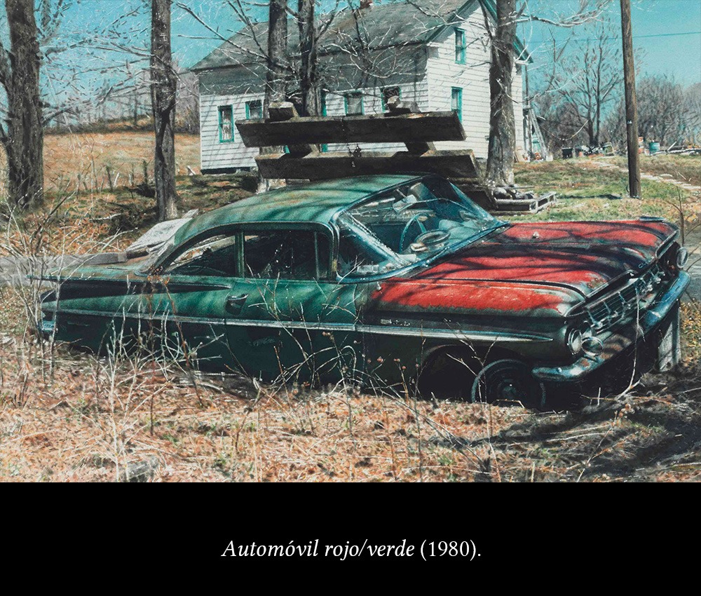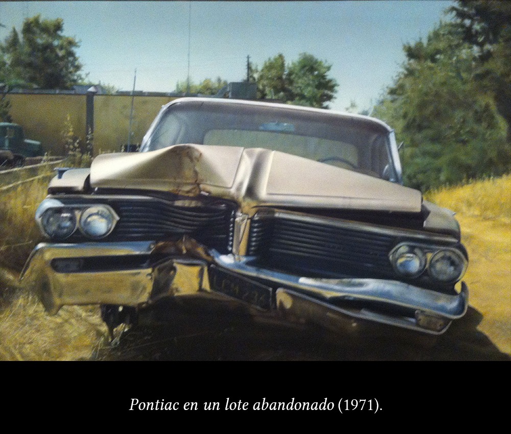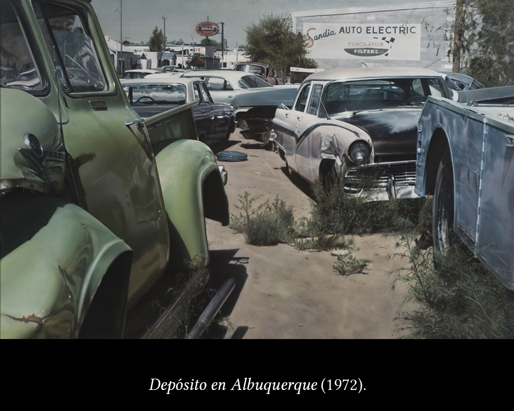 Si bien nació en Inglaterra, John Salt es uno de los pintores que iniciaron el llamado fotorrealismo norteamericano. Sus autos abandonados, chocados, en ruinas, “arrojados” en lugares marginales, nos hablan con cierto tono crítico de un mundo consumista donde las cosas que dejan de “servir” se tiran para seguir consumiendo otras.