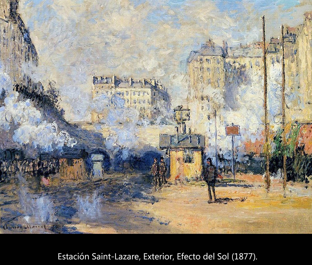 Obsesionado por capturar la impresión, el instante, el modo en que fugazmente nuestro ojo percibe las cosas gracias a la luz y las condiciones atmosféricas, a Monet se le ocurrió la genial idea de hacer series: representar un mismo lugar o las mismas cosas en distintos momentos del día, para demostrar los diferentes efectos. La primera de todas sus series es la de la estación Saint-Lazare.