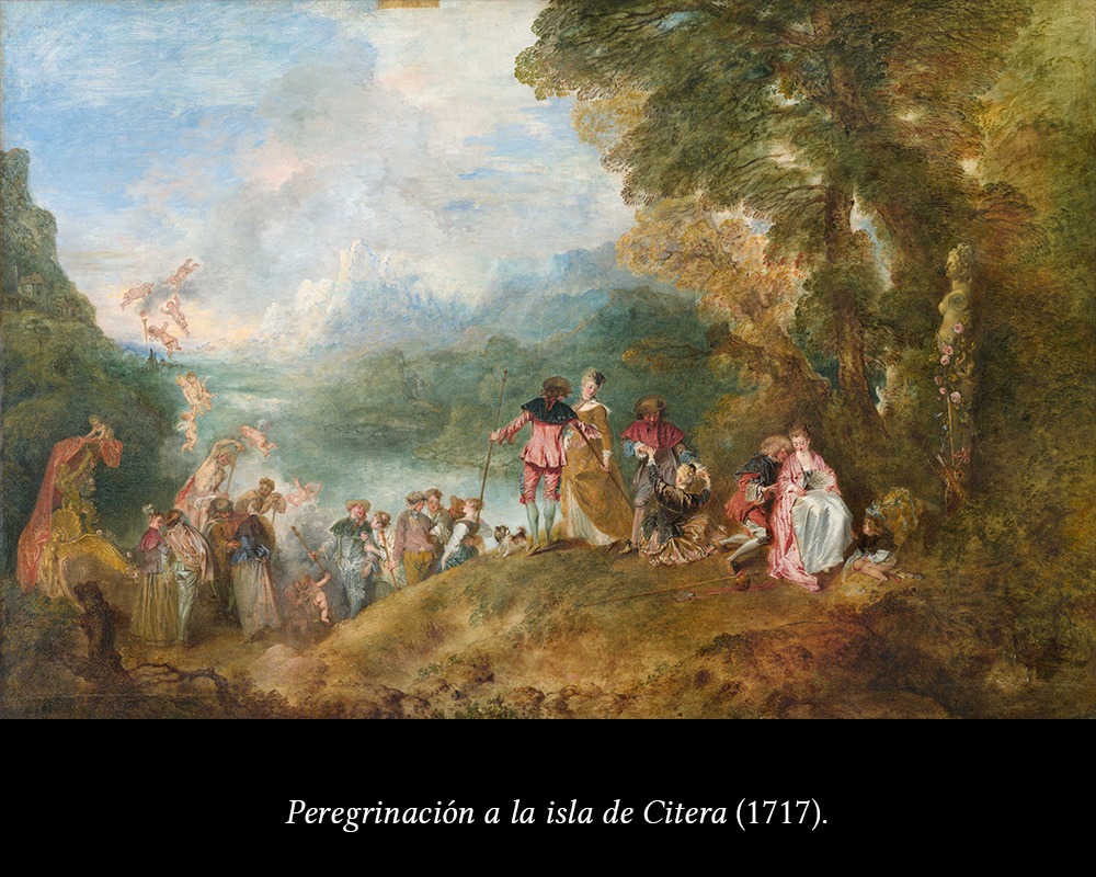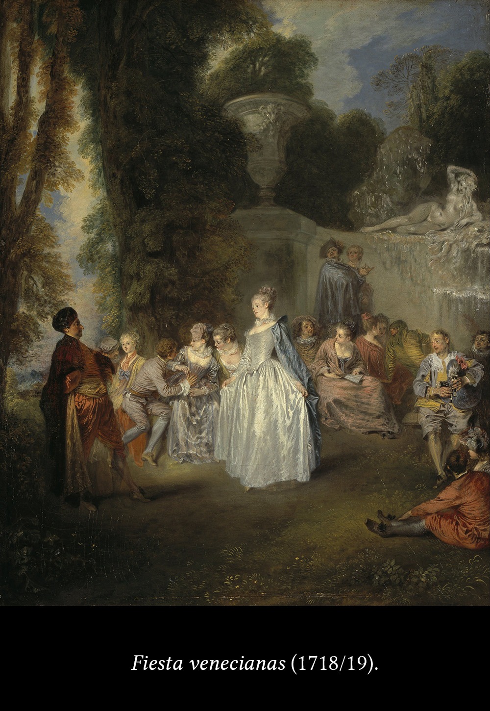 Antoine Watteau es el iniciador de un género llamado “fiestas galantes” (en realidad sería un subgénero de la pintura de costumbres). Un tipo de obras que se popularizarán durante el rococó por una causa muy simple: son el espíritu mismo del rococó.