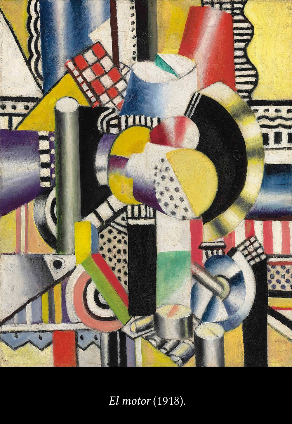 Formas geométricas, colorido brillante, mucha abstracción, movimiento. Durante la evolución de la etapa cubista de Léger, hay un momento (1918-1919) en que la obra refleja el mundo de múltiples estímulos y a toda velocidad que le imprimen la máquina y el progreso.