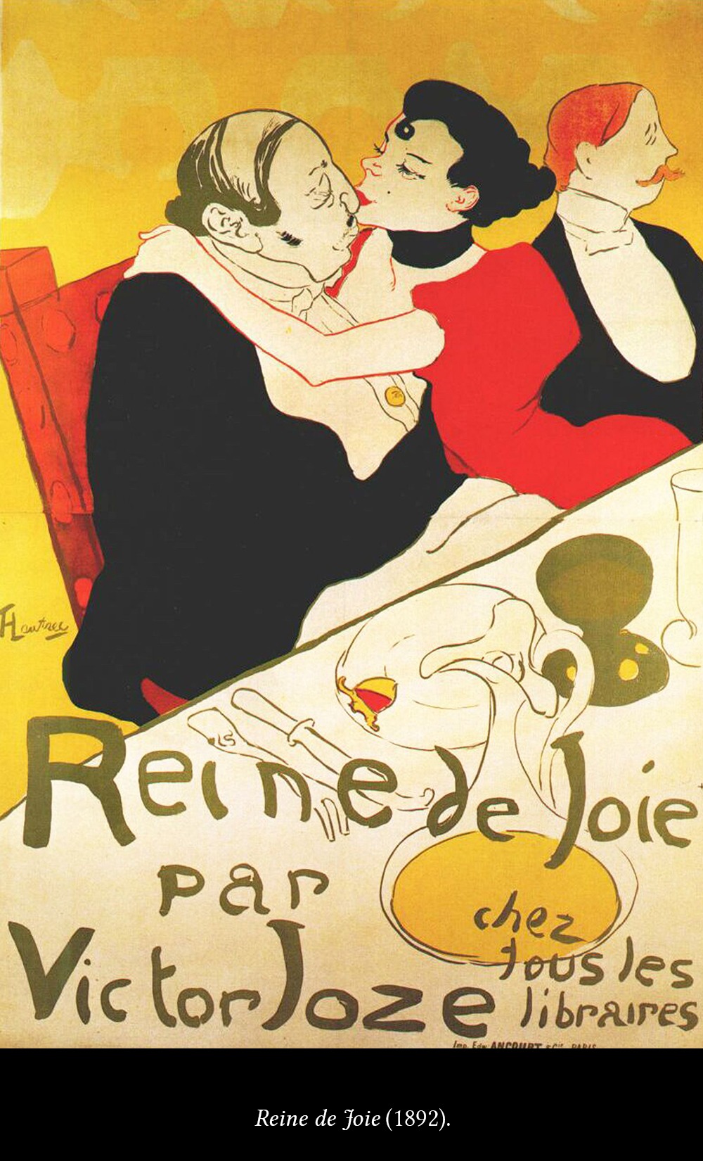 Lo que acabamos de describir son los carteles de Lautrec, pero es al mismo tiempo la descripción que utilizamos para referirnos a la estampa japonesa del siglo XVIII. La estampa japonesa que tanta influencia tiene en impresionistas y postimpresionistas y, justamente, donde más claramente “aparece” es aquí: en los carteles (en total pintó 33) con los que Lautrec describe el mundo de la distracción, las fiestas y la alegría de La Belle Époque. Carteles que promocionan espectáculos, pero que Lautrec ha elevado a obras de arte.