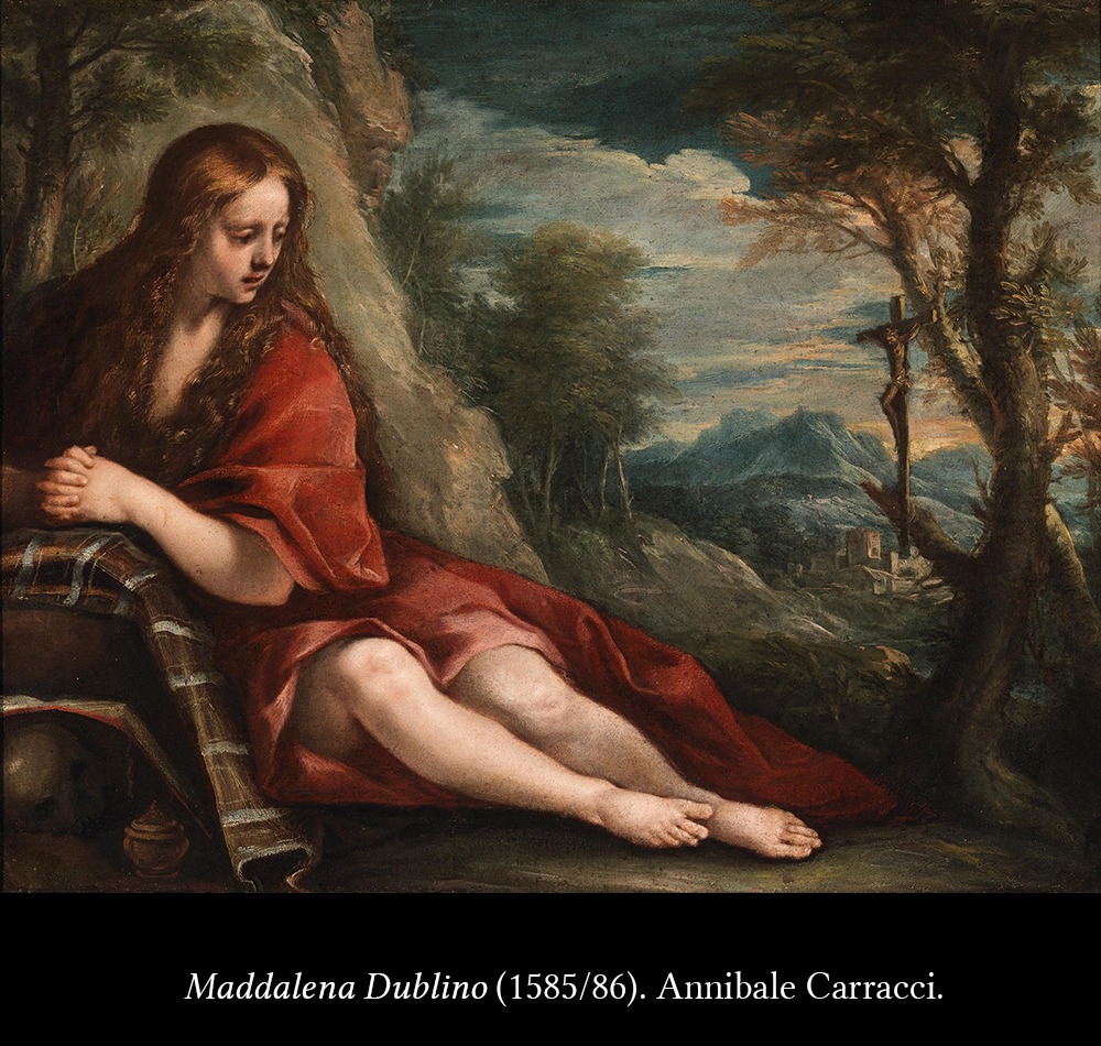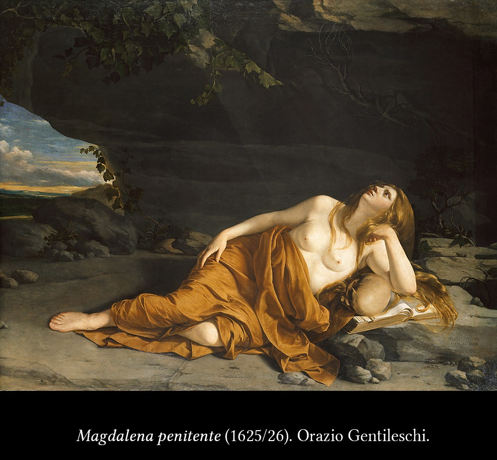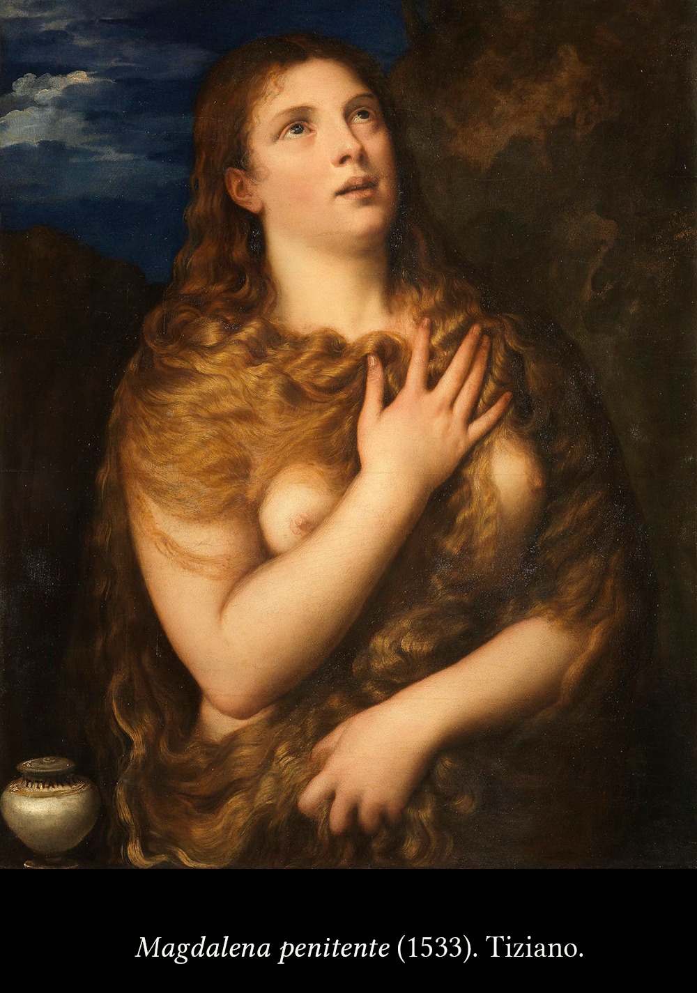 No hay arte ni belleza que nos asombren, que nos deleiten, sin contrapuntos, sin algo distinto, algo inusual, sin alguna contradicción que nos saque de lo normal, de lo ordinario. Y, justamente, la atracción magnética que ejerce este personaje de la historia del cristianismo sobre los artistas de otros siglos es un contrapunto maravilloso: el de la mujer que será Santa, “la apóstol de los apóstoles”, quien a su vez es la pecadora (se la suele mostrar penitente: haciendo penitencia en una cueva en el desierto por aquellos pecados -se considera que se dedicó a la prostitución). Pecado y santidad. Belleza interior y sensualidad.