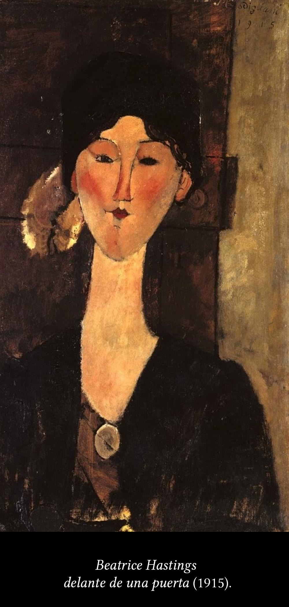 Modigliani todavía no ha pintado la obra que conocemos y que lo convertirá en uno de los grandes pintores del siglo XX. Es más: le quedan apenas unos 6 años de vida. Sintiéndose un fracaso como pintor, ha vuelto a la escultura. Y entonces conoce a Beatrice Hastings, uno de los grandes amores que retratará una y otra vez (no tan conocida como Jeanne Hébuterne). Con Beatrice, Modigliani vuelve a pintar.