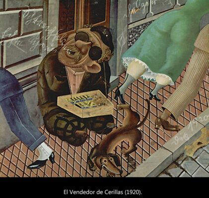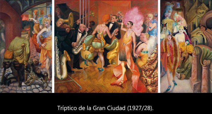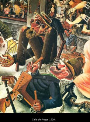 Es uno de los representantes más destacados de la nueva objetividad alemana, una corriente crucial en ese país desde el fin de la primera Guerra Mundial (1919) hasta el ascenso del nazismo. El artista denuncia provocativamente, ácidamente, como si fuera una pesadilla absurda, la realidad de posguerra que ha dejado al pueblo mutilado, prostituido, con hambre y lleno de odio revanchista. Dix es un ejemplo muy concreto del artista que asume el compromiso de luchar por cambiar la realidad. (Lamentablemente, lo peor todavía estaba por llegar).