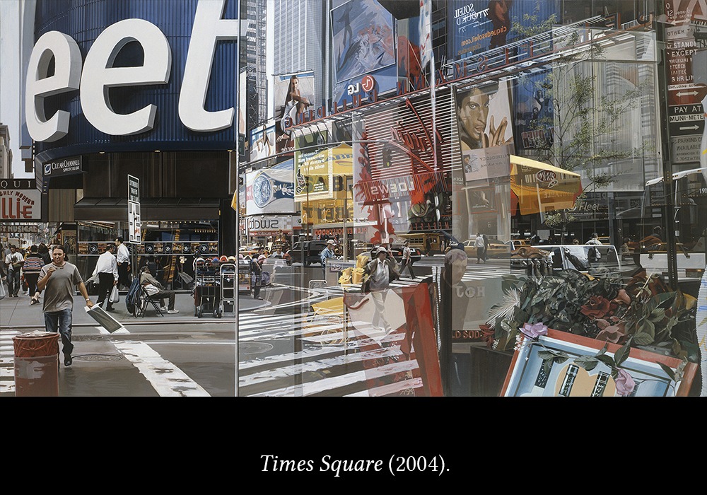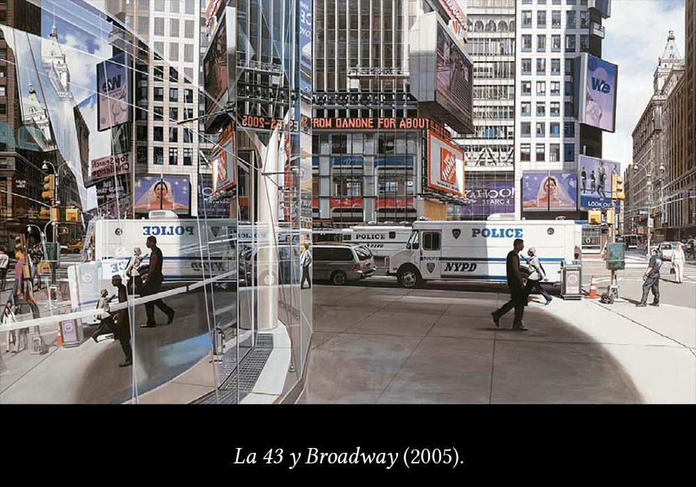 Pero esos reflejos no se quedan solo en pura capacidad técnica, sino que muestran una mirada personal sobre el universo y la vida, que convierte a Estes en un artista aún más importante: la realidad como un reflejo que la multiplica, o la deforma, o la fragmenta en un montón de reflejos parciales, o la deja ver débilmente.