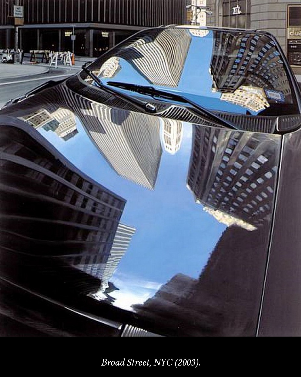Richard Estes es uno de los fundadores del fotorrealismo norteamericano (también llamado hiperrealismo) que surge a finales de la década de 1960. En gran parte de su obra podemos observar que su virtuosismo se luce aún más cuando pinta las imágenes que se reflejan en cristales o en todo tipo de superficies espejadas.