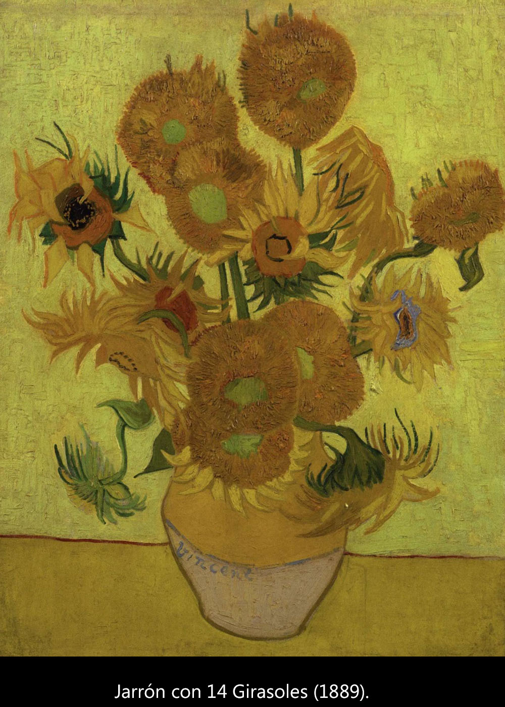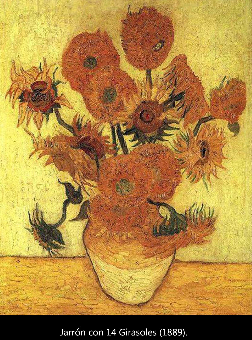 Van Gogh escribe a su hermano Theo que, esperando la llegada de Gauguin (vivirán juntos una temporada en Arles), quiere expresar su alegría pintando una serie de cuadros con nada más que girasoles.