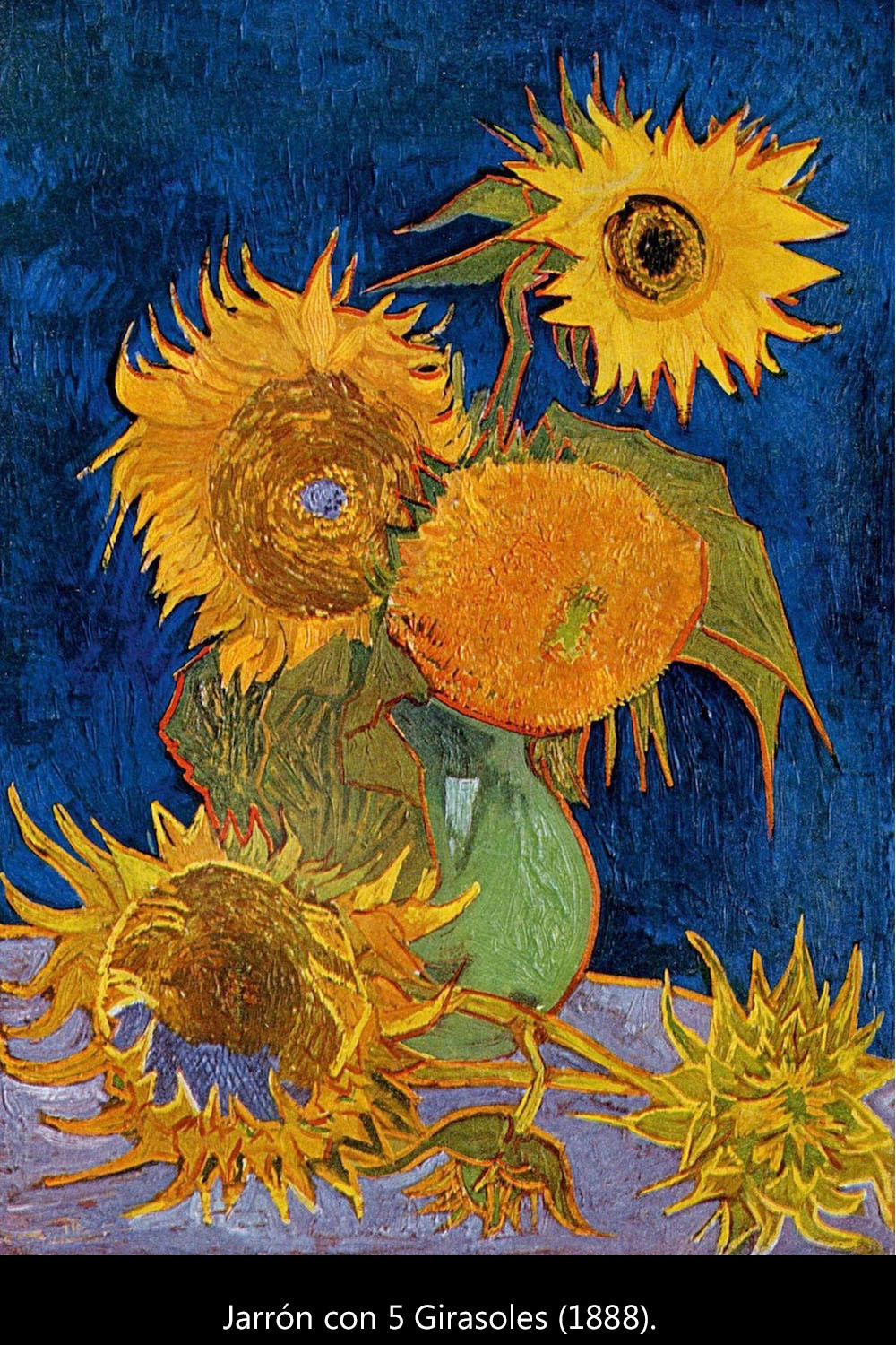 Imagina la serie como una "sinfonía de azul y amarillo". Ya no importa pintar esas flores como son en realidad sino que la forma, la pincelada y el color convierten a los girasoles en las emociones del artista.